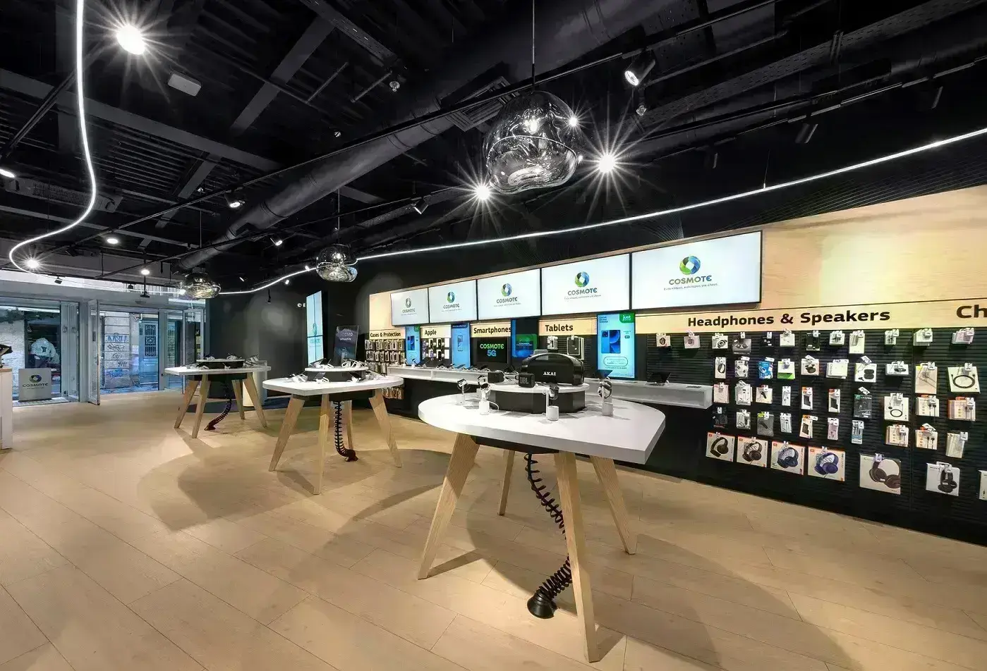 Ακολουθώντας τις πιο σύγχρονες αρχιτεκτονικές τάσεις, τα ανακαινισμένα καταστήματα COSMOTE είναι σχεδιασμένα με καινοτόμα υλικά, άνετους και οικείους χώρους, είναι πιο λειτουργικά αλλά και πιο διαδραστικά. Με στόχο να καλύπτουν πλήρως τις ανάγκες των πελατών τους, παρέχουν µία ευρεία γκάµα προηγμένων προϊόντων τεχνολογίας όπως smartphones, tablets, laptops, αξεσουάρ, smartwatches, τηλεοράσεις, έξυπνες λύσεις για το σπίτι, καθώς και ολοκληρωμένες λύσεις και υπηρεσίες COSMOTE σε σταθερή και κινητή τηλεφωνία, Internet και τηλεόραση. Επιπλέον, διαθέτουν θεματικές ζώνες και νέες σχεδιαστικές γραμμές που αναδεικνύουν το προϊοντικό τους portfolio και διευκολύνουν την περιήγηση του επισκέπτη στον χώρο.