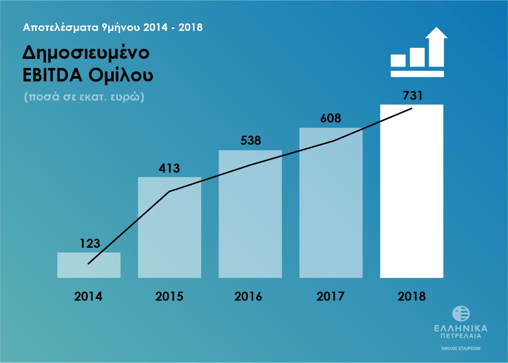 Το 2018 θα αποτελέσει έτος – ορόσημο για την ανοδική και διαχρονικά πλέον σταθερή κερδοφόρα πορεία του Ομίλου ΕΛΛΗΝΙΚΑ ΠΕΤΡΕΛΑΙΑ, με τα ιδιαίτερα θετικά αποτελέσματα Γ’ Τριμήνου – Εννεαμήνου 2018 να δημιουργούν ακόμη ένα ισχυρό θεμέλιο για το μέλλον.