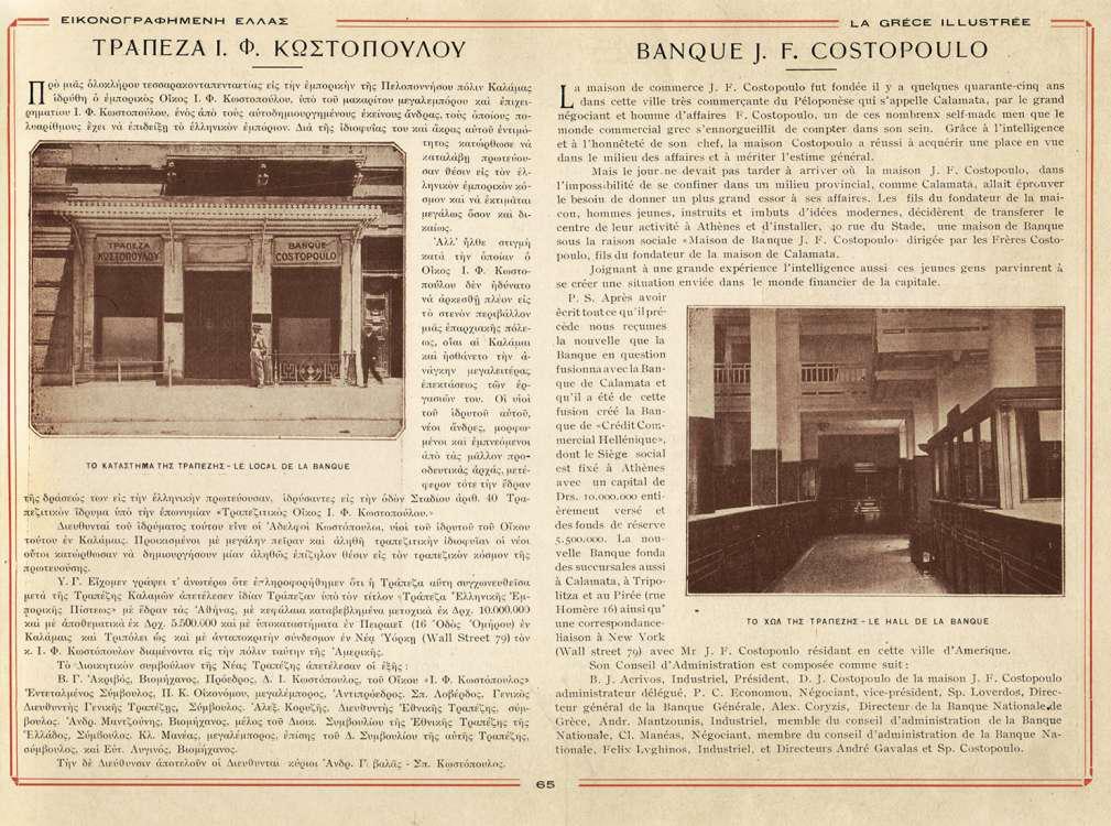 Φτάνουμε στο 1924 με την Ελλάδα να προσπαθεί ακόμη να επουλώσει τις πληγές της Καταστροφής του 1922, όταν η Τράπεζα Καλαμών συγχωνεύεται με το τραπεζικό τμήμα του οίκου Ι.Φ. Κωστοπούλου και δημιουργείται η Τράπεζα Ελληνικής Εμπορικής Πίστεως, με έδρα την Αθήνα, που ανέπτυξε ένα περιφερειακό δίκτυο υποκαταστημάτων στη Νότιο Πελοπόννησο.
