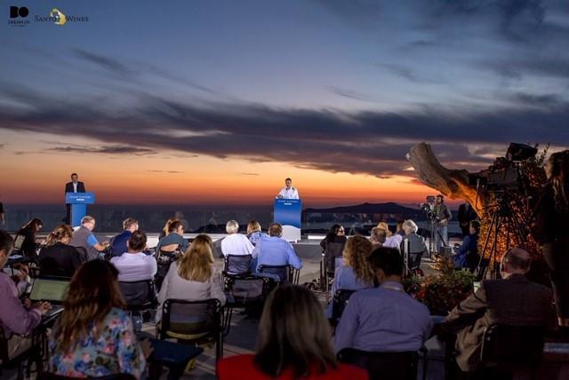 Στα πλαίσια της επίσκεψης του πρωθυπουργού στη Σαντορίνη για τα εγκαίνια της καμπάνιας GREEK SUMMER 2020 για το διεθνές άνοιγμα του ελληνικού τουρισμού, επιλέχθηκε για την συνέντευξη τύπου που παραχώρησε ο κ. Μητσοτάκης σε ανταποκριτές ξένων μέσων ενημέρωσης, το οινοποιείο SantoWines ως ένα από τα πιο εντυπωσιακά σημεία του νησιού, με φόντο το ηφαίστειο και όλη την καλντέρα την ώρα του ηλιοβασιλέματος. Ανεβαίνοντας στο βήμα ο πρωθυπουργός ανέφερε ότι έχει ως φόντο, μία από τις ωραιότερες θέες στον κόσμο. «Σήμερα η εικόνα εξακολουθεί να είναι υπέροχη. Κόβει την αναπνοή και εμπνέει», τόνισε.