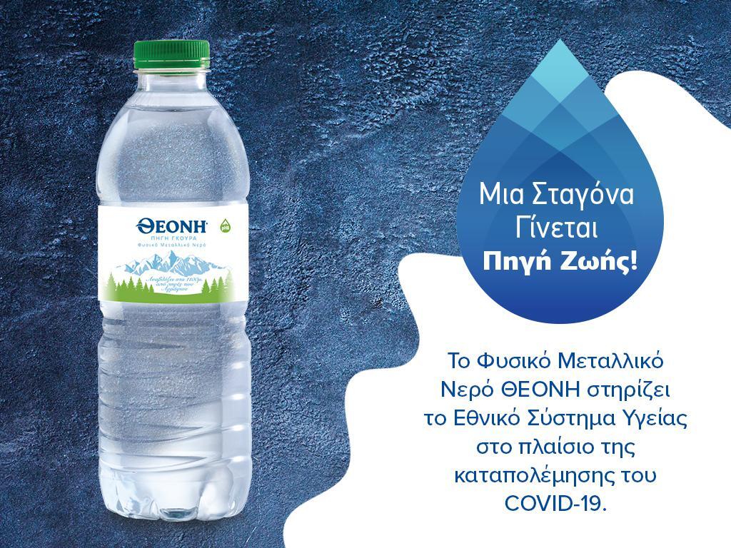 Το ΘΕΟΝΗ, με έντονο αίσθημα Κοινωνικής Ευθύνης, προχώρησε στη δωρεά του χρηματικού ποσού που συγκεντρώθηκε από την καμπάνια «Μια σταγόνα γίνεται ΠΗΓΗ ΖΩΗΣ» , η οποία υλοποιήθηκε τον Απρίλιο του 2020. Στο πλαίσιο της καμπάνιας ευαισθητοποίησης του ΘΕΟΝΗ μέρος των πωλήσεων των φιαλών συγκεντρώθηκε με στόχο να αποδοθεί στον κρατικό λογαριασμό για την αντιμετώπιση του COVID-19.