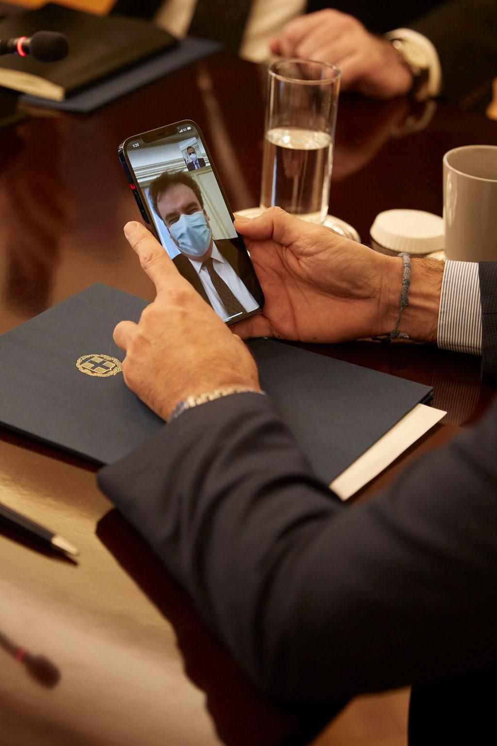 H πρώτη βιντεοκλήση μέσω δικτύου 5G στη χώρα μας, πραγματοποιήθηκε στο Μέγαρο Μαξίμου, μεταξύ του Πρωθυπουργού κ. Κυριάκου Μητσοτάκη και του Υπουργού Επικρατείας και Ψηφιακής Διακυβέρνησης κ. Κυριάκου Πιερρακάκη, κατά τη διάρκεια της συνάντησής τους με τον CEO του Ομίλου Deutsche Telekom, κ. Tim Höttges, την επικεφαλής της Deutsche Telekom για την Ευρώπη, κα Dominique Leroy και τον Πρόεδρο και Διευθύνοντα Σύμβουλο του Ομίλου ΟΤΕ, κ. Μιχάλη Τσαμάζ. Στη συνάντηση συμμετείχαν επίσης, μέσω τηλεδιάσκεψης, ο επικεφαλής Νομικών & Ρυθμιστικών Θεμάτων του Ομίλου DT, κ. Wolfgang Kopf και η Νομική Σύμβουλος και Chief Officer Νομικών & Ρυθμιστικών Θεμάτων Ομίλου ΟΤΕ, κα Ειρήνη Νικολαΐδη.