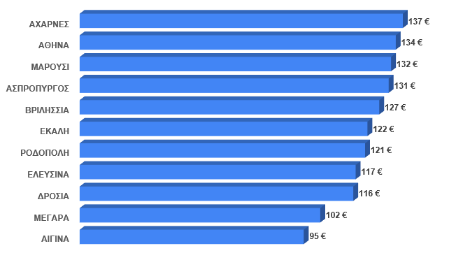 Ενδεικτικά παρακάτω παρουσιάζονται διαφορές στα ασφάλιστρα μεταξύ περιοχών του νομού Αττικής.