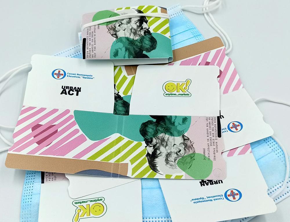 Με δεδομένο ότι ο τρόπος ζωής μας έχει αλλάξει και όπως προδιαγράφεται θα συνεχίζουμε να βιώνουμε την αλλαγή αυτή για πολύ καιρό ακόμα, οι μάσκες αποτελούν αναγκαίο και καθοριστικό κομμάτι της καθημερινότητας μας. Αυτή τη νέα ανάγκη αγκάλιασαν τα OK! Anytime Markets και σε συνεργασία με την Urban Act δημιούργησαν μια σειρά από προστατευτικές θήκες για μάσκες για το προσωπικό του Θριάσιου Νοσοκομείου, διακοσμημένες με “τμήματα” των εικαστικών έργων-τοιχογραφιών που δημιουργήθηκαν στο εν λόγω νοσοκομείο στο πλαίσιο του προγράμματος «Χρώμα στα Νοσοκομεία», από τον καλλιτέχνη LifeInColour.