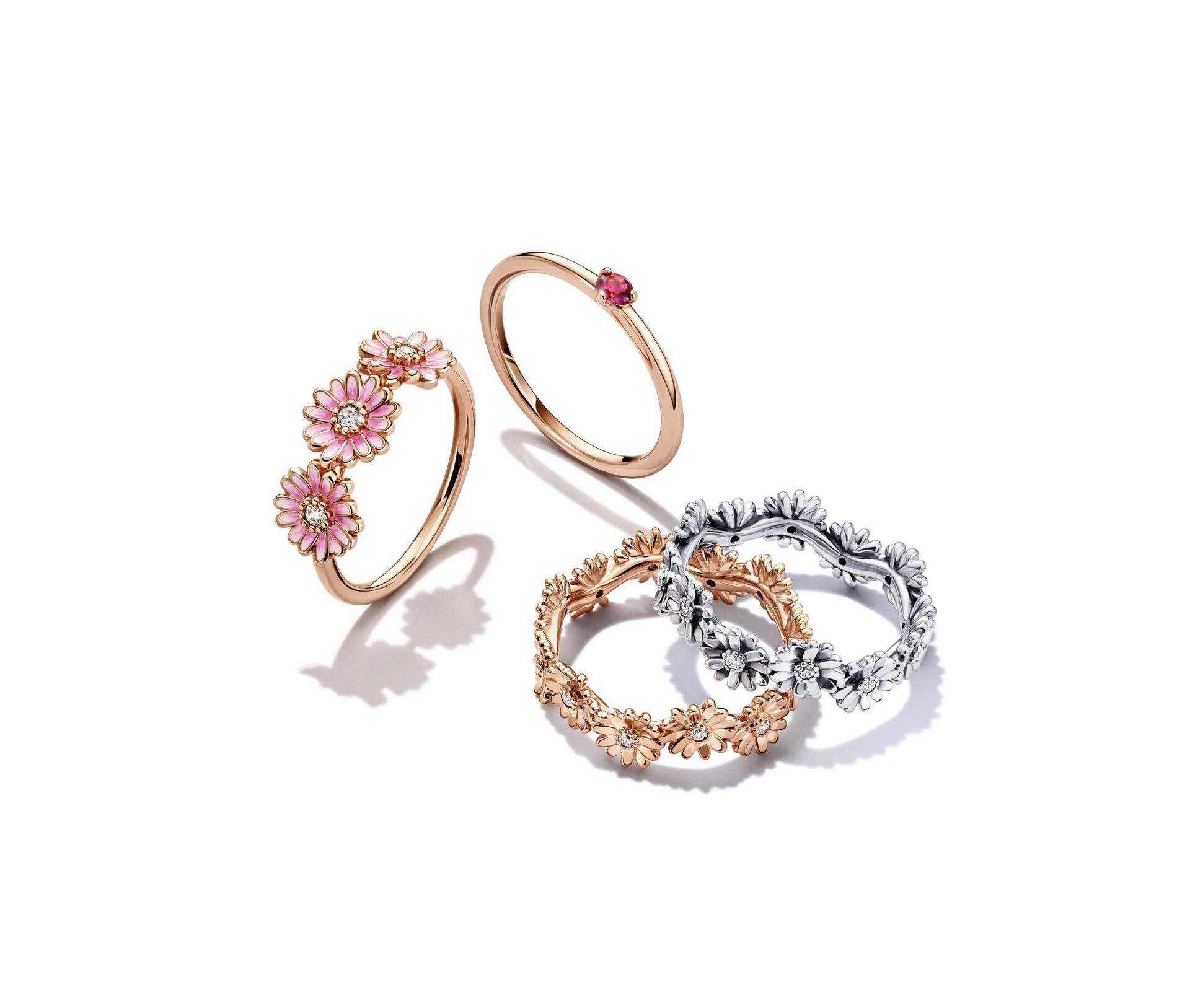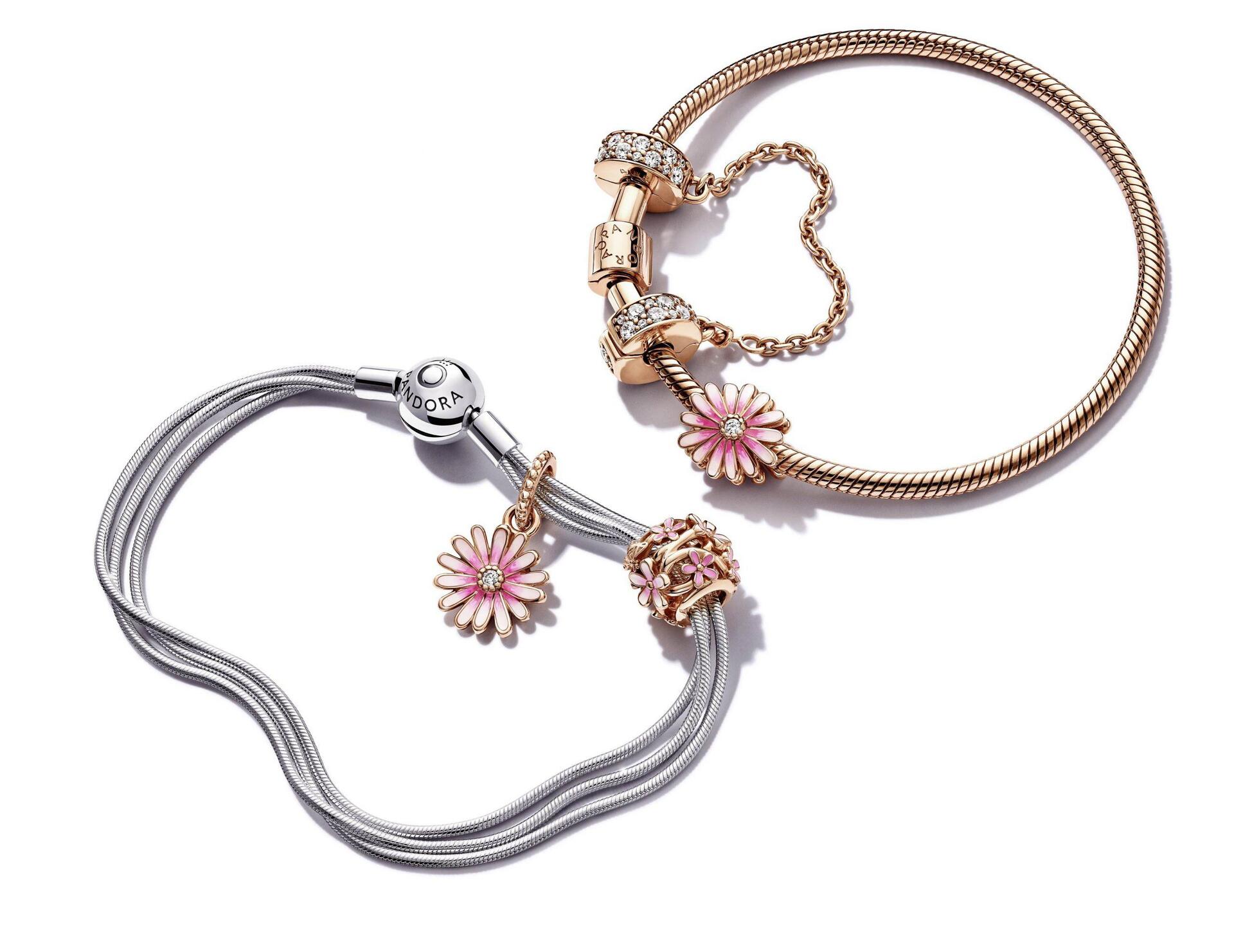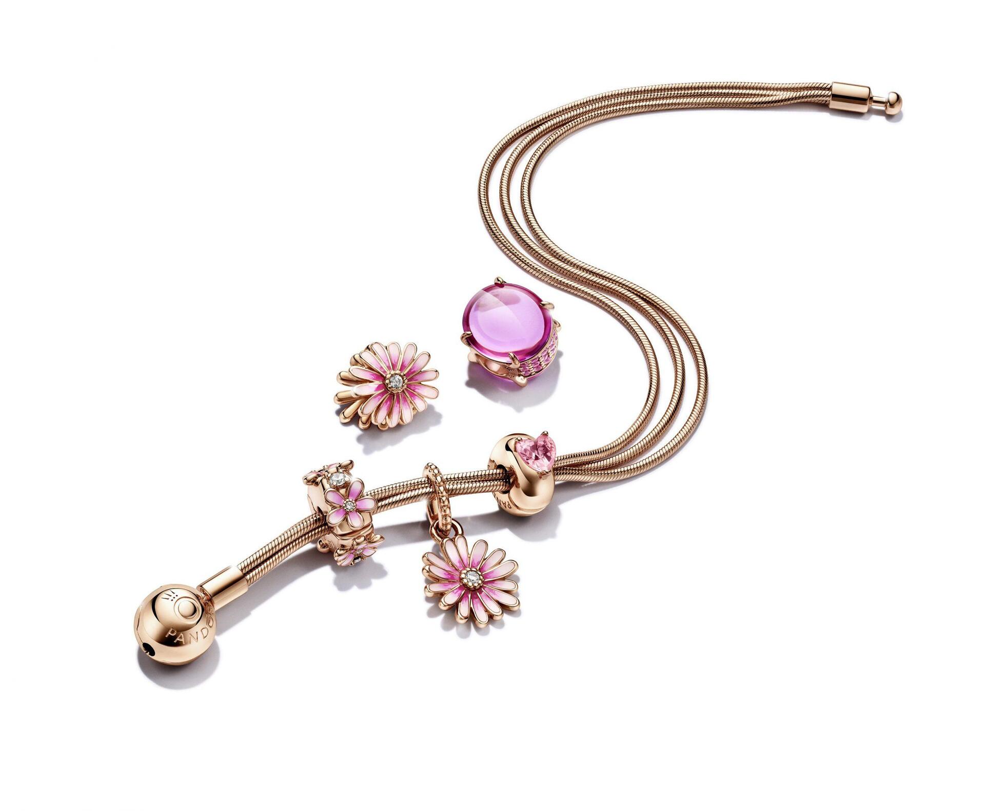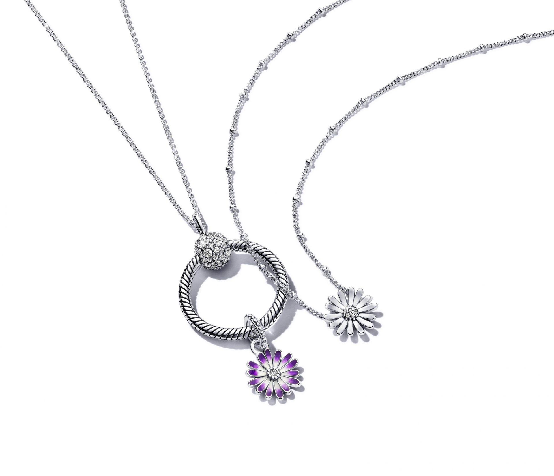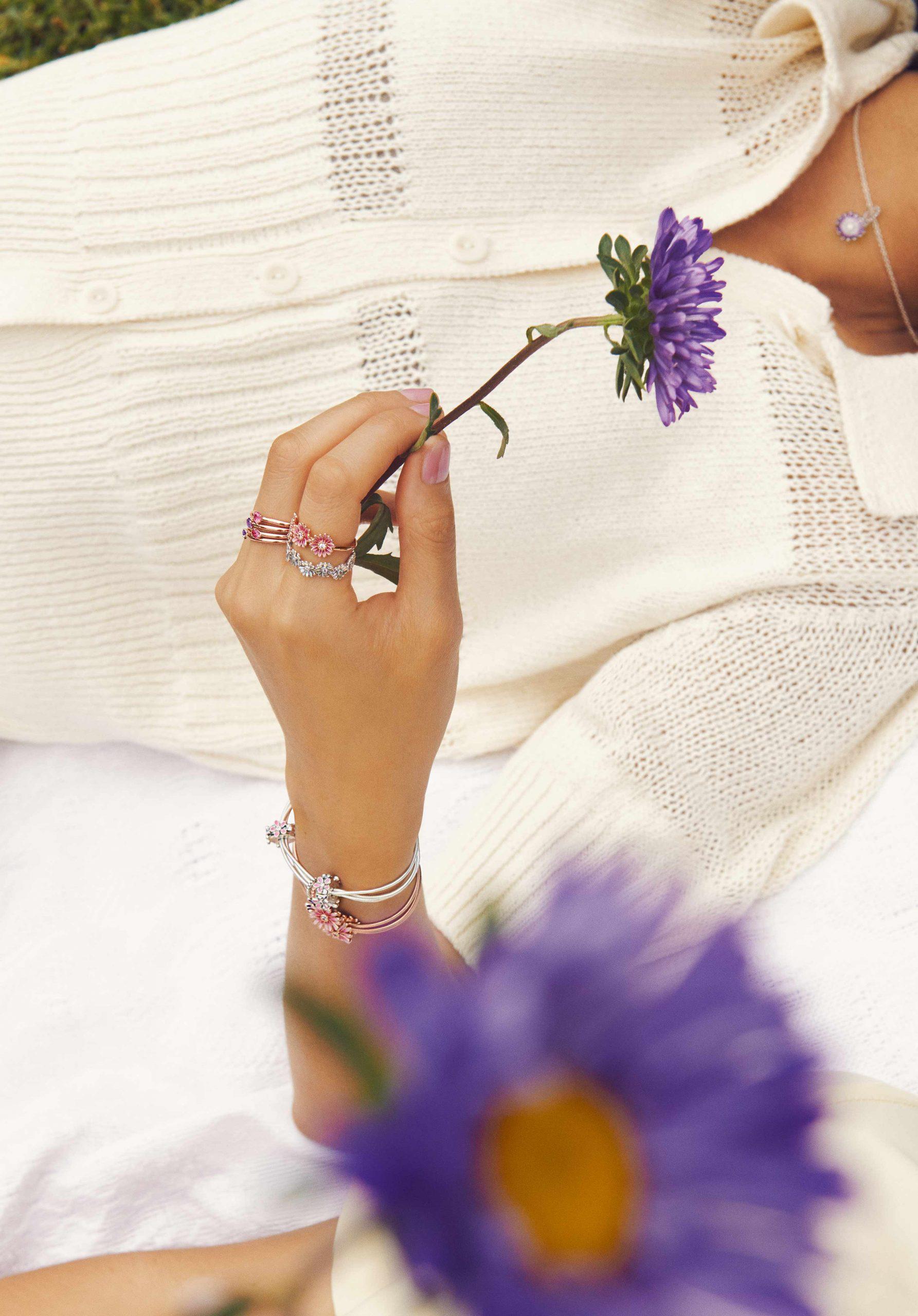 Προσθέστε μια ανάλαφρη πινελιά σε κάθε ανοιξιάτικη εμφάνιση με τα νέα κομψά δαχτυλίδια και charms της PANDORA. Αυτή τη σεζόν η νέα μωβ απόχρωση κάνει την παρθενική της εμφάνιση στα purple charms, σχέδια που συμπληρώνουν μοναδικά το στυλ Pink Daisy.