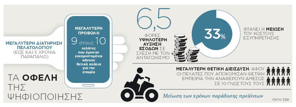* Αύξηση εσόδων, 6,5 φορές υψηλότερη σε σχέση με τον ανταγωνισμό, καθώς οι πελάτες που έχουν μια θετική εμπειρία ξοδεύουν 140% παραπάνω σε σχέση με όσους έχουν αρνητική εμπειρία, ενώ το 86% των ικανοποιημένων πελατών σχεδιάζουν επιπλέον αγορές από την επιχείρηση.