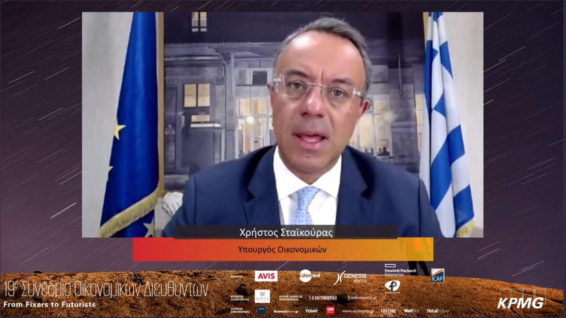 Ο Υπουργός Οικονομικών, Χρήστος Σταϊκούρας έκανε την εναρκτήρια keynote ομιλία στο 19ο Συνέδριο Οικονομικών Διευθυντών της KPMG και ανέφερε πως κανείς δεν ήταν προετοιμασμένος για την πανδημία και με συνεκτικά και αποτελεσματικά μέτρα ύψους 41 δισ. ευρώ η κυβέρνηση κατάφερε να στηρίξει την οικονομία και το επιχειρείν. Στη συνέχεια μίλησε για την υλοποίηση του προγράμματος αποκρατικοποιήσεων και επενδύσεων η οποία συνεχίζεται παρά τις δυσμενείς συνθήκες της αγοράς. Μεταξύ άλλων αναφέρθηκε στον στόχο για την ενίσχυση του χρηματοπιστωτικού συστήματος και της μείωσης των κόκκινων δανείων των τραπεζών μέσω της εφαρμογής του σχεδίου Ηρακλής, καθώς και στον στόχο ενίσχυσης της βιωσιμότητας εταιρειών του Δημοσίου και εξήρε τον ρόλο της ΚPMG σε αυτά τα σημεία αναφοράς για την οικονομική πολιτική. Τέλος, αναφέρθηκε στο πρόγραμμα Ελλάδα 2.0 στο οποίο προσβλέπει στη βέλτιστη αξιοποίηση των Ευρωπαϊκών πόρων για να ενισχυθεί η ανάπτυξη και η «πράσινη» οικονομία, να δημιουργηθούν νέες θέσεις εργασίας, να διαμορφωθούν αποτελεσματικότερα φορολογικά πλαίσια για όλους και να υιοθετηθούν σύγχρονες τεχνολογίες.