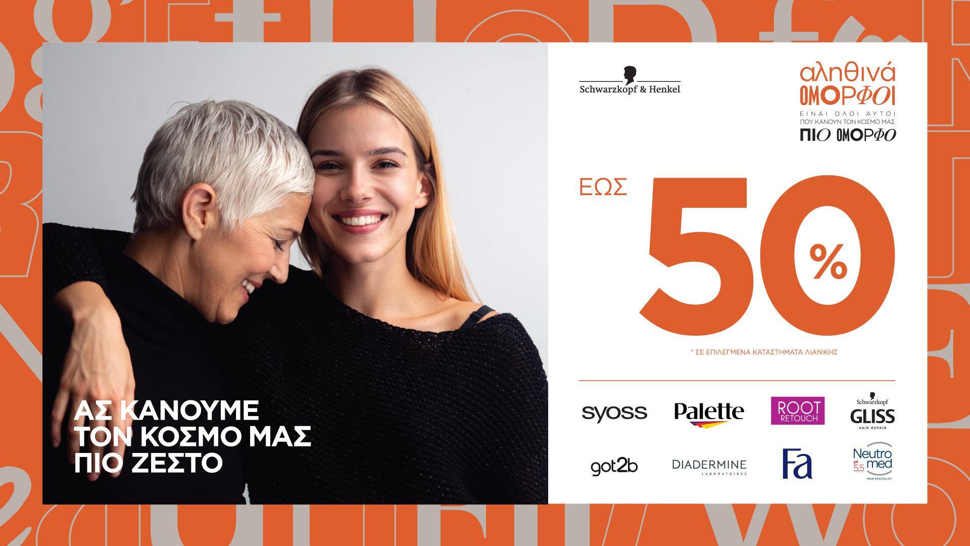 Αυτή την ομορφιά υποστηρίζει η Henkel, προσφέροντάς μας εκπτώσεις έως 50% στα αγαπημένα μας προϊόντα ομορφιάς και προσωπικής φροντίδας Syoss, Gliss, Palette, Root Retouch, Got2b, Taft, Diadermine, Fa, Neutromed και Theramed.