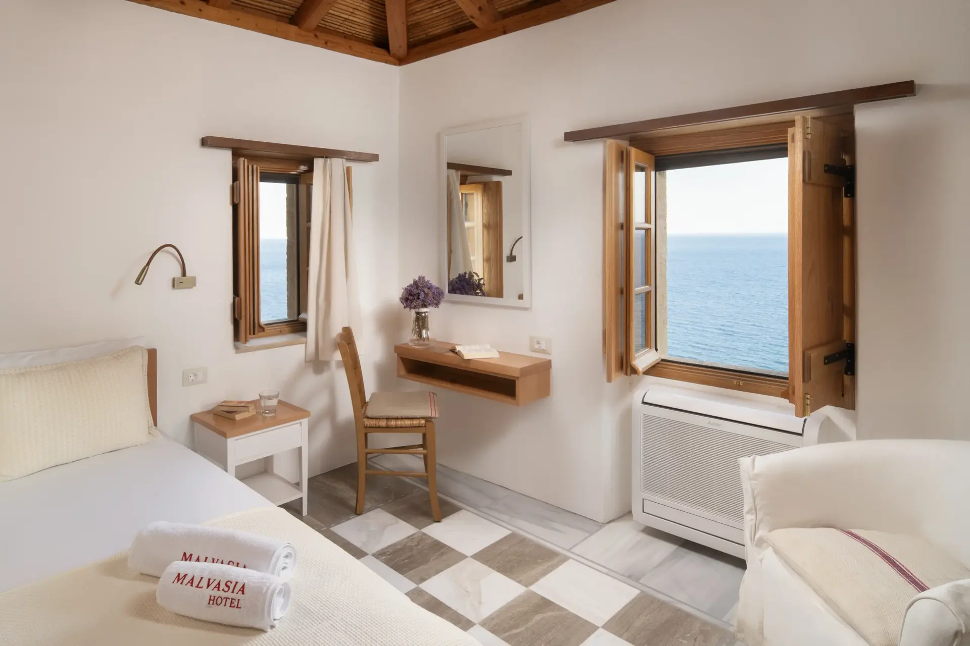 Σε μια μαγευτική τοποθεσία, στην άκρη του Κάστρου της Μονεμβασιάς, τριακόσια μέτρα από την πύλη, θα συναντήσετε το ξενοδοχείο Bastione Malvasia. Η θέα, συναρπαστική, κόβει την ανάσα.