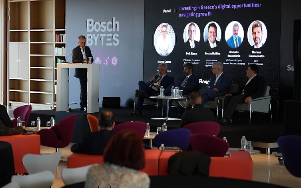 Το πρώτο σκέλος της ημερίδας Bosch Bytes Athens ολοκληρώθηκε με το πάνελ «Επένδυση στις ψηφιακές ευκαιρίες της Ελλάδας: πλοήγηση στην ανάπτυξη» (Investing in Greece’s digital opportunities: navigating growth»). Η συζήτηση των ομιλητών εστίασε σε ζητήματα όπως ποιοι τομείς θα ωφεληθούν περισσότερο από την ψηφιοποίηση στην Ελλάδα,πώς οραματίζονται την εξέλιξη της πορείας της χώρας, δεδομένων των συνεχιζόμενων προσπαθειών οικονομικής ανάκαμψης της Ελλάδας, ιδιαίτερα υπό το φως των αναδυόμενων παγκόσμιων τάσεων και των τεχνολογικών εξελίξεων αλλά και ποιες ευκαιρίες και προκλήσεις προβλέπονται για την προσέλκυση ξένων επενδύσεων, ειδικότερα στη βιομηχανία ημιαγωγών, στο πλαίσιο της προσπάθειας της Ελλάδας να αναδειχθεί ως κόμβος ψηφιακού μετασχηματισμού.