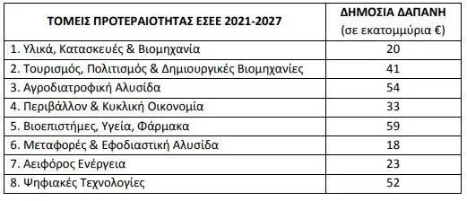 Οι Αιτήσεις Χρηματοδότησης ερευνητικών έργων που θα υποβληθούν, θα αφορούν στους 8 τομείς της Εθνικής Στρατηγικής Έξυπνης Εξειδίκευσης (ΕΣΕΕ):