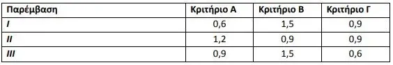 Κάθε κριτήριο (Α, Β, Γ) βαθμολογείται ξεχωριστά.