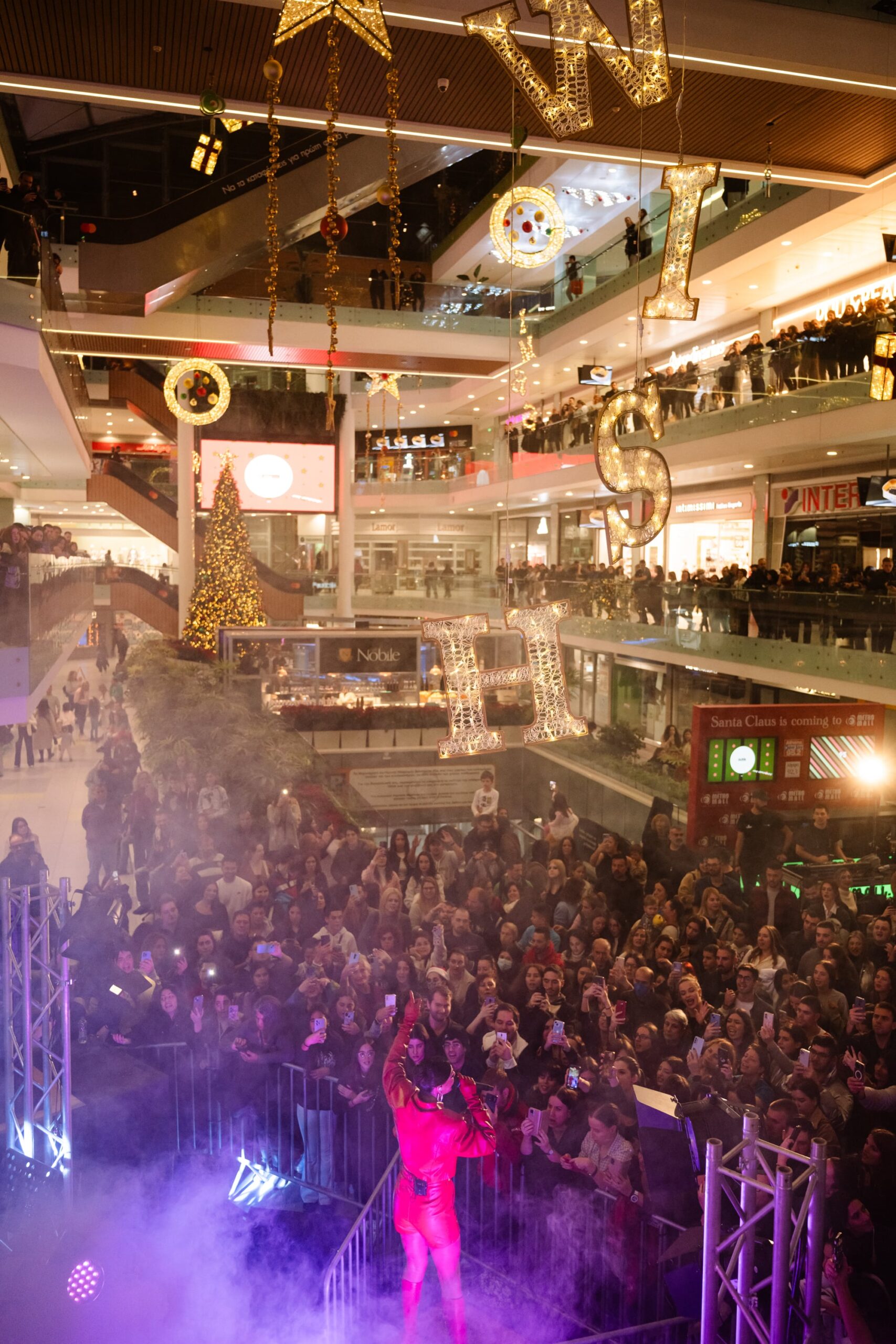 Με το πιο φωτεινό χαμόγελο και το αστείρευτο χιούμορ που τους διακρίνει το μοναδικό ντουέτο των συντονιστών της βραδιάς, αφού υποδέχτηκε όσους πλημμύρησαν το αγαπημένο εμπορικό κέντρο των νοτίων προαστίων και έδωσε το σύνθημα για τη φωταγώγηση του Χριστουγεννιάτικου Δέντρου, καλωσόρισε επί σκηνής την καταξιωμένη pop star Ήβη Αδάμου και το Δημήτρη Θεοδοσιάδη για ένα live εκρηκτικό μουσικό πρόγραμμα!