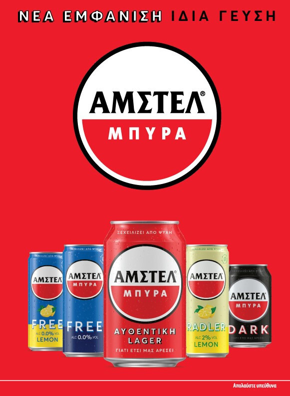 Διατηρώντας αναλλοίωτη τη μοναδική της γεύση, ενισχύει το νεανικό χαρακτήρα της, ενώ έρχεται ακόμα πιο κοντά στο κοινό της, με ένα πιο μινιμαλιστικό design. Η νέα τολμηρή ταυτότητα, πολύτιμο στοιχείο του DNA της μάρκας, πετυχαίνει να αποτυπώσει με σύγχρονο ύφος τις αξίες της ΑΜΣΤΕΛ και λανσάρεται σε όλη την οικογένεια: από την αυθεντική lager, και την ΑΜΣΤΕΛ Dark, μέχρι τις Low & No Alcohol επιλογές, την ΑΜΣΤΕΛ Free 0.0% & Free Lemon 0.0%, αλλά και την ΑΜΣΤΕΛ Radler Lemon 2%.