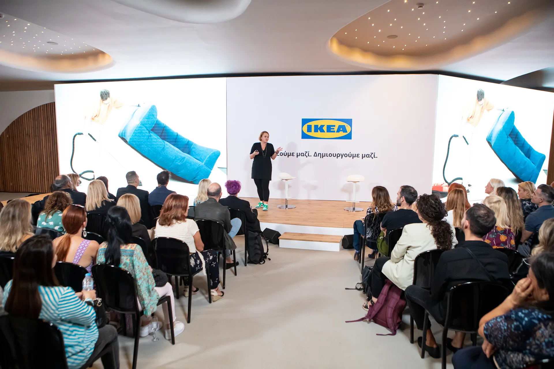 Κατά την διάρκεια της εκδήλωσης η κα Άντα Γιαννεσκή, Communications Director IKEA, υποδέχθηκε και καλωσόρισε τους καλεσμένους ανοίγοντας τη συζήτηση με μια αναφορά στις καινοτόμες ιδέες ΙΚΕΑ που άλλαξαν τον χώρο της επίπλωσης και της διακόσμησης διαχρονικά: «Η ΙΚΕΑ δημιούργησε ένα νέο μοντέλο στον χώρο της επίπλωσης με τις επίπεδες συσκευασίες, το κλειδί allen και τη συναρμολόγηση των επίπλων, που γρήγορα έγιναν σύμβολο συνδημιουργίας και χαράς, για να δώσει λύσεις και να εμπνεύσει τον κόσμο να δημιουργήσει μία καλύτερη καθημερινή ζωή. Σήμερα συνεχίζουμε να δημιουργούμε και να προσφέρουμε συνεχώς νέες δυνατότητες μέσα από τα προϊόντα και τις υπηρεσίες μας».