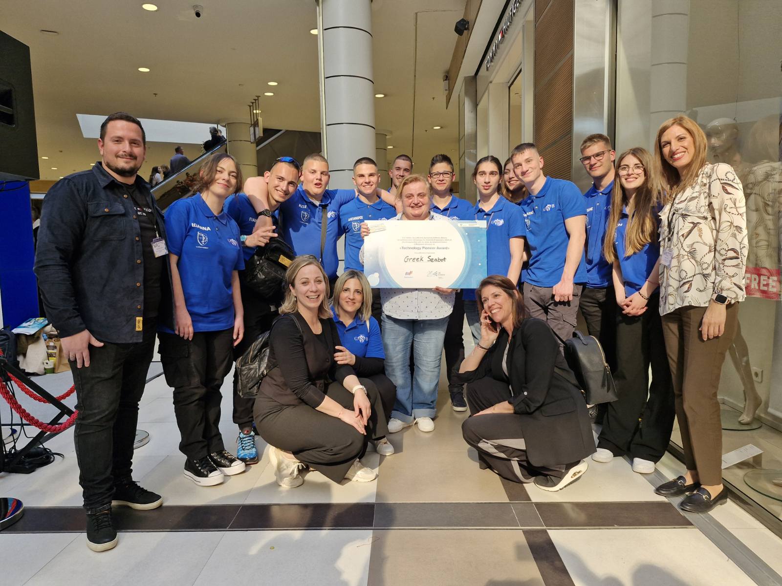 Αντίστοιχα, στην εμπορική έκθεση της Αθήνας, η κα Βάσω Τσούνη, Marketing & Communications Manager, και ο κ. Παναγιώτης Σοφής, IT Recruitment & Tech Academies Manager της ManpowerGroup Ελλάδας, απένειμαν το ίδιο βραβείο στην ομάδα Greek Seabot από το ΕΠΑ.Λ. Αλίμου – Ευπαλίνειο. Η ομάδα διακρίθηκε για την πρωτοποριακή ιδέα ενός τηλεχειριζόμενου ρομπότ με ενσωματωμένη τεχνολογία τεχνητής νοημοσύνης (AI), το οποίο εντοπίζει και απομακρύνει πλαστικά απορρίμματα από τη θάλασσα, συμβάλλοντας ενεργά στην προστασία του θαλάσσιου περιβάλλοντος.