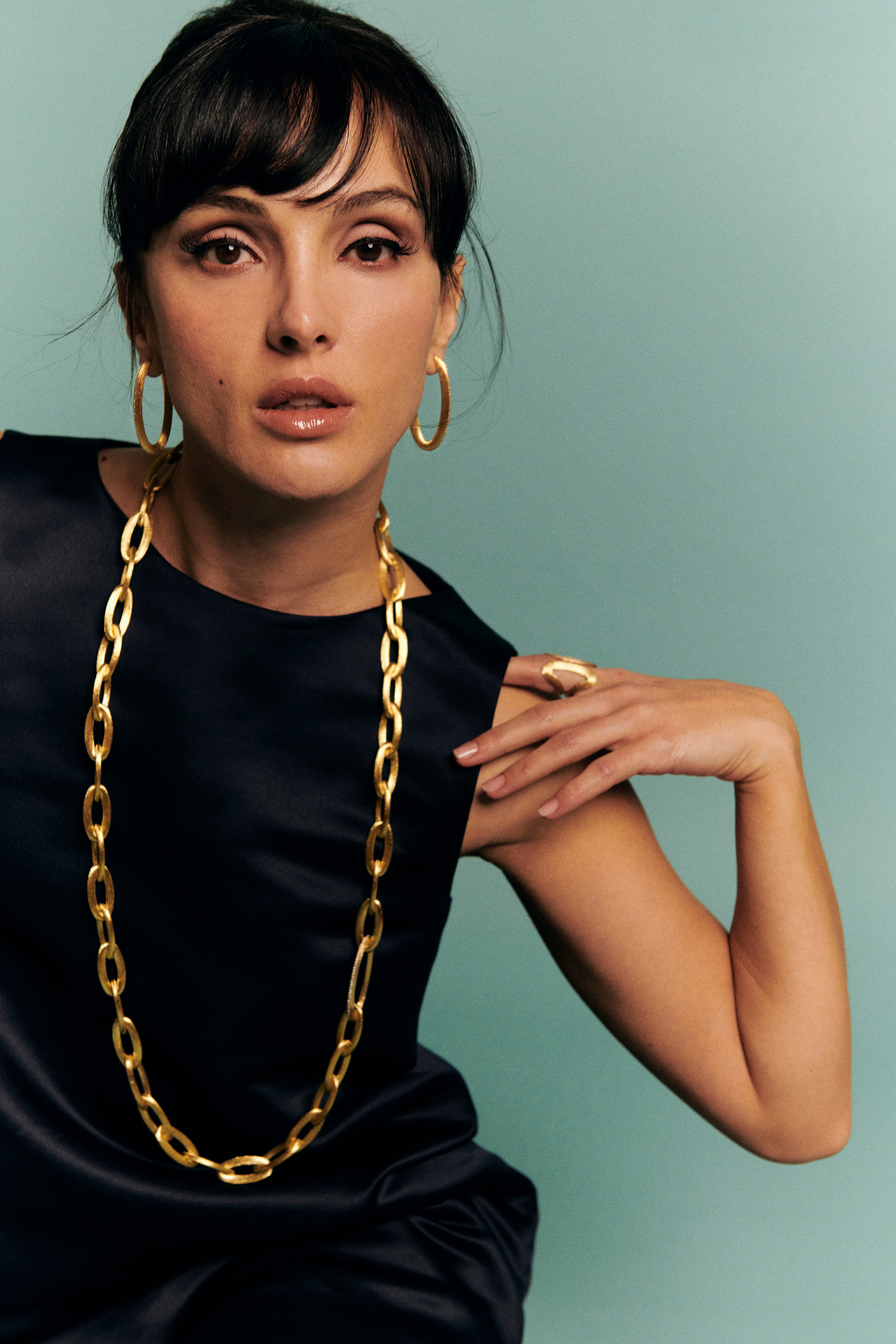 πρωταγωνιστεί επίσης, με τα διπλής όψης κοσμήματα που συνδυάζουν φυσικές πέτρες και εγχάρακτο χρυσό σε έναν ποιητικό διάλογο μεταμόρφωσης.