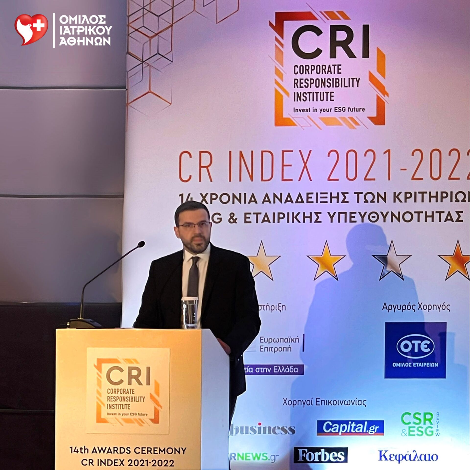 Ο Εκτελεστικός Αντιπρόεδρος του Διοικητικού Συμβουλίου κ. Χρήστος Αποστολόπουλος δήλωσε: «Στον Όμιλο Ιατρικού Αθηνών, η ενσωμάτωση των αξιών της Εταιρικής Υπευθυνότητας αποτελεί επιχειρηματική πρακτική, εδώ και 37 χρόνια. Η «GOLD» διάκριση, ως Top Performing Company, την οποία λαμβάνει ο Όμιλός μας, για δεύτερη συνεχή χρονιά, στο πλαίσιο της διαδικασίας αξιολόγησης των ελληνικών εταιρειών που συμμετείχαν στο Δείκτη CR Index 2021 – 2022, αποτελεί για εμάς, την έμπρακτη απόδειξη μίας επιτυχημένης προσπάθειας. Κυρίως όμως, αποτελεί τη δέσμευση μας να συνεχίσουμε, μέσα σε αυτό το πλαίσιο, πρωταγωνιστώντας στις εγχώριες και διεθνείς εξελίξεις, ως ο Ελληνικός Πόλος Υγείας, που παραμένει, πάντα ένα βήμα μπροστά.»