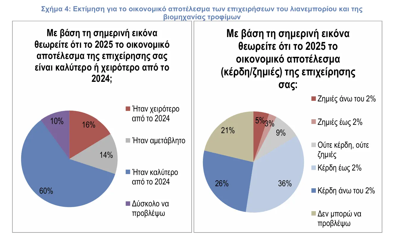 Σε ό,τι αφορά τα αποτελέσματα των ίδιων των εταιρειών, η εικόνα εμφανίζεται βελτιωμένη. Έξι στις δέκα επιχειρήσεις δηλώνουν ότι το 2025 ήταν καλύτερο από το 2024, ενώ μόλις ένα μικρό ποσοστό αναφέρει χειρότερη επίδοση.