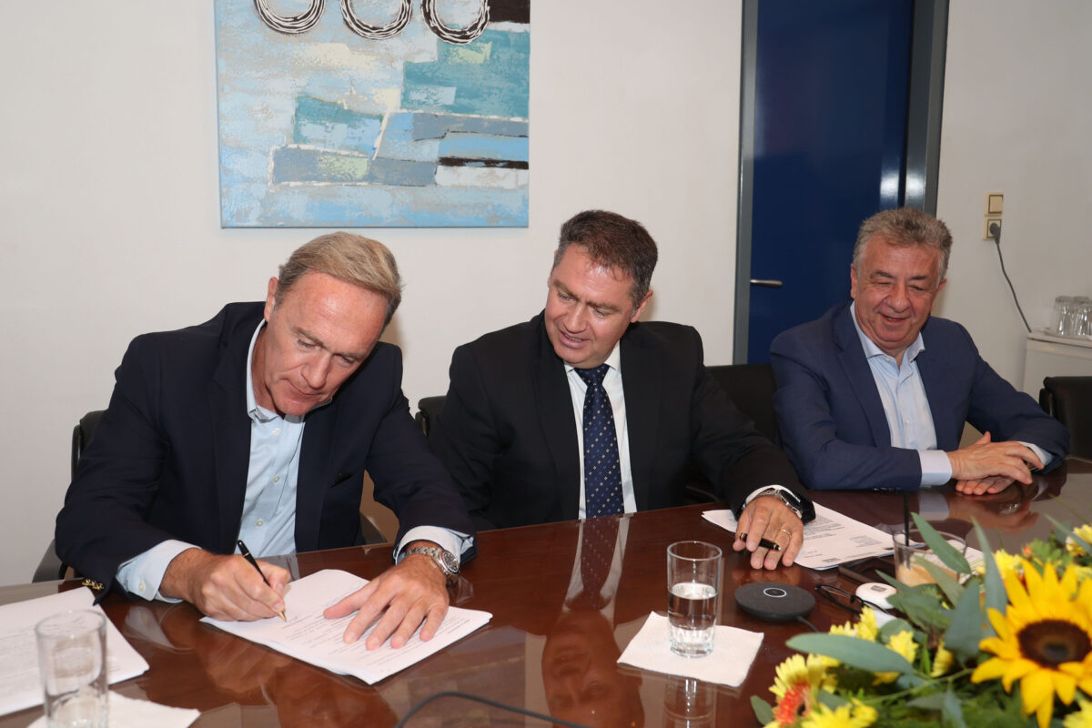 Συγκεκριμένα, τη σύμβαση υπέγραψαν ο πρόεδρος του ΦοΔΣΑ κος Ιωάννης Σέγκος και ο νόμιμος εκπρόσωπος της Αναδόχου Κοινοπραξίας κος Νίκος Σταθάκης παρουσία, μέσω τηλεδιάσκεψης, του Γενικού Γραμματέα Διαχείρισης Απορριμμάτων κου Μανώλη Γραφάκου και με φυσική παρουσία του Περιφερειάρχη Κρήτης κου Σταύρου Αρναουτάκη.