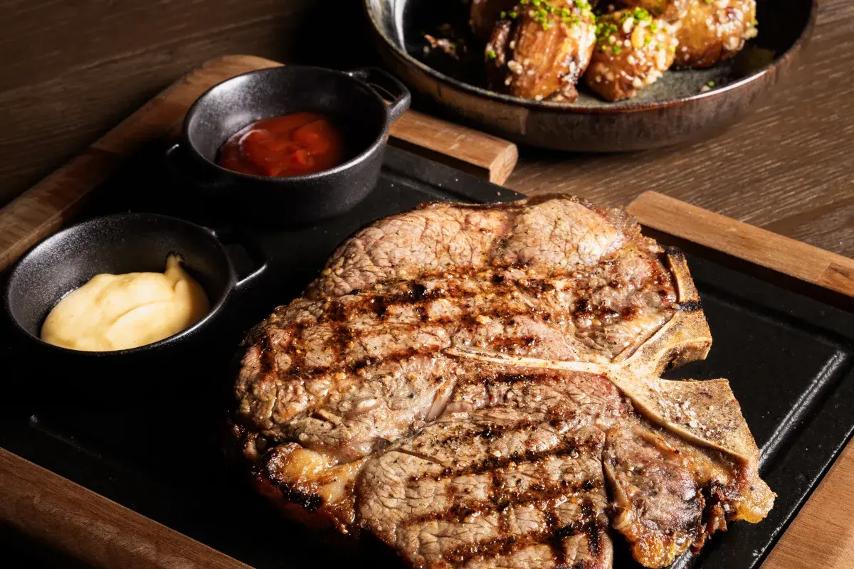 Το μενού σχεδιασμένο μέχρι την τελευταία λεπτομέρεια από τον Executive Chef Κωνσταντίνο Μποβιάτση και πρωταγωνιστή καλής ποιότητας κοπές κρεάτων, υπόσχεται γεύσεις στις οποίες δύσκολα μπορεί κάποιος να αντισταθεί. Comfort πιάτα βασισμένα στην αμερικανική κουζίνα και steaks από την Νέα Ζηλανδία, όπως Black Angus Cheeseburger, Ribeye, T-Bone Steak, είναι μερικά μόνο από τα λαχταριστά κυρίως πιάτα, ενώ δεν λείπουν τα εμπνευσμένα ορεκτικά, οι ευφάνταστες σαλάτες, τα προσεγμένα συνοδευτικά, οι απαραίτητες sauce και φυσικά τα επιδόρπια, ώστε να κλείσει θριαμβευτικά αυτή η γαστρονομική εμπειρία.