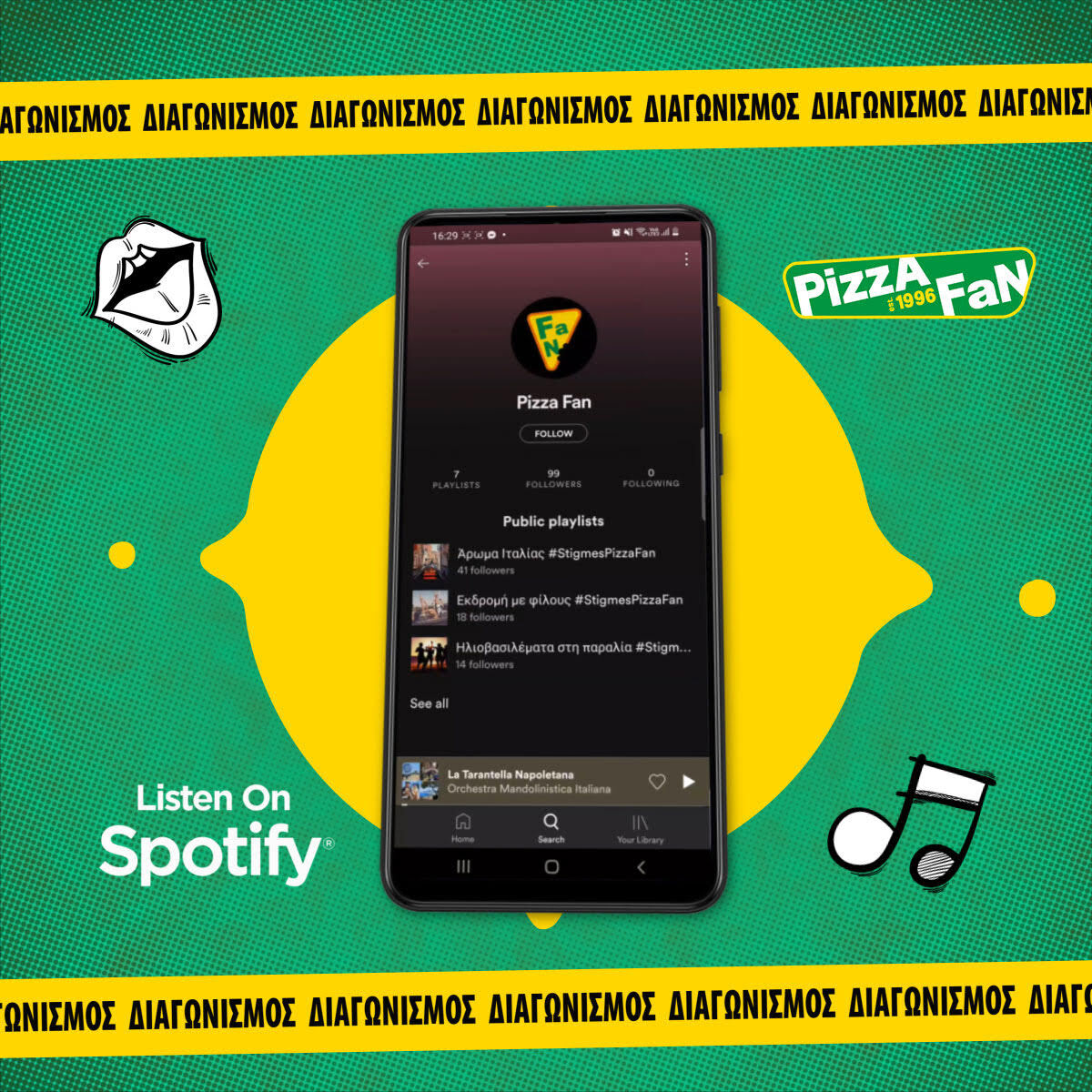 Είτε περιμένεις την παράδοση της παραγγελίας σου είτε απολαμβάνεις την πίτσα που μόλις παρέλαβες, το κανάλι της PIZZA FAN στο Spotify είναι ο go-to προορισμός για να προσθέσεις έξτρα απόλαυση στις #stigmespizzafan σου, μέσα από διαφορετικές θεματικές playlists, ανάλογα με την «όρεξή» σου – ποιος δεν θέλει να απολαύσει την αγαπημένη του Μαργαρίτα Al Forno ακούγοντας την playlist «Άρωμα Ιταλίας»;