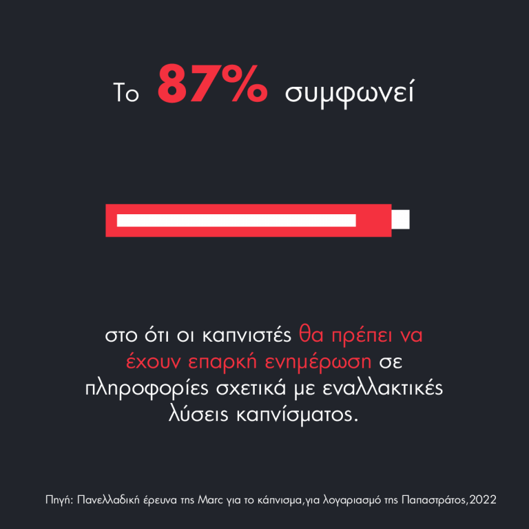 • Ανάμεσα στους καπνιστές, μόνο 2 στους 10 (21,7%) δηλώνουν πως έχουν την πληροφόρηση που