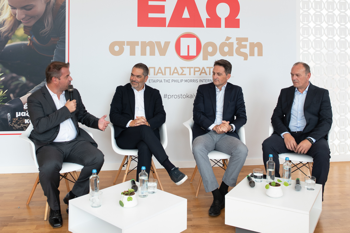 Στη συζήτηση συμμετείχαν ο Ιάκωβος Καργαρώτος, Αντιπρόεδρος της Παπαστράτος, ο Χρήστος Σταμάτης, Συνιδρυτής και Διευθύνων Σύμβουλος της Stevia Hellas, καθώς και ο Ηλίας Κάλφας,Project Leader του Innovation & Impact Hub της Αμερικανικής Γεωργικής Σχολής.