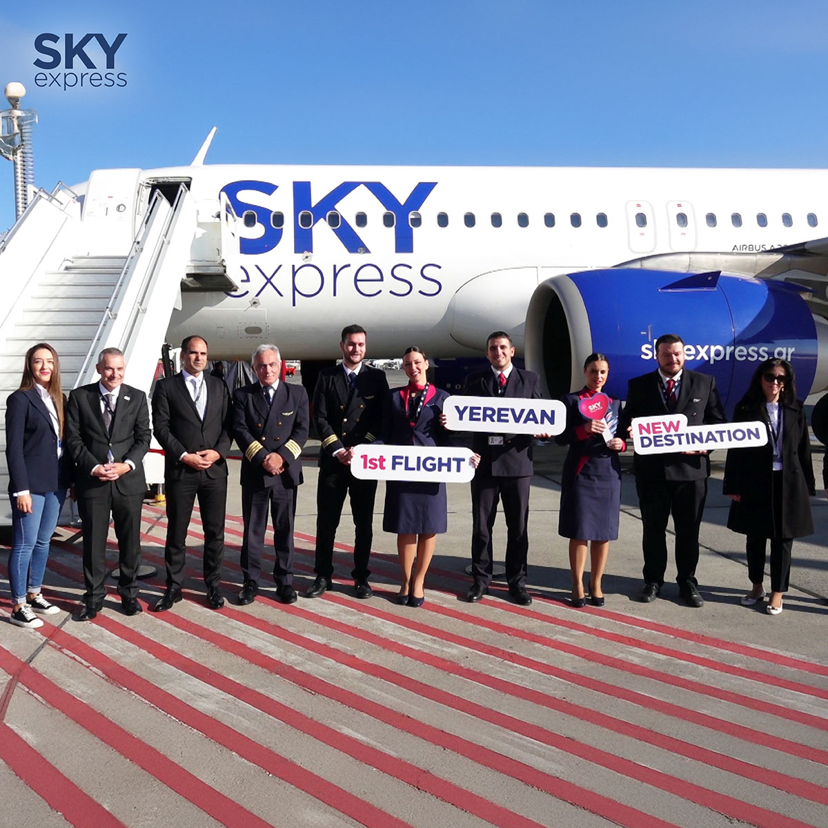 Από πλευράς του, ο Γεράσιμος Σκαλτσάς, Εμπορικός Διευθυντής της SΚΥ express, δήλωσε «Είμαστε ενθουσιασμένοι για την προσθήκη του Διεθνές Αεροδρομίου Ζβαρτνότς του Γερεβάν στο διεθνές δίκτυο της SKY express. Η νέα απευθείας πτήση προς την πρωτεύουσα της Αρμενίας, όχι μόνο ανταποκρίνεται στην αυξανόμενη ζήτηση για ταξίδια προς το Γερεβάν αλλά ταυτόχρονα ενδυναμώνει τις σχέσεις μεταξύ των δύο χωρών. Μέσω αυτής της σύνδεσης, επιδιώκουμε να ενδυναμώσουμε ακόμα περισσότερο τις πολιτιστικές και οικονομικές επαφές, προσκαλώντας ταξιδιώτες από την Αρμενία να εξερευνήσουν την Ελλάδα αλλά και μέσω της Αθήνας το μεγαλύτερο δίκτυο προορισμών εσωτερικού, που εξυπηρετούμε στη χώρα. Δέσμευσή μας παραμένει η αναβάθμιση των υπηρεσιών μας και της ταξιδιωτικής εμπειρίας των επιβατών μας».