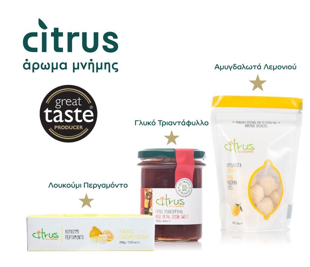 Οι νέες βραβεύσεις από τα Great Taste Awards δικαιώνουν απόλυτα την πολύχρονη προσπάθεια και την αφοσίωση της ομάδας CITRUS, η οποία αποδίδει τη μέγιστη σημασία στην ποιότητα των πρώτων υλών, ενώ εξελίσσεται διαρκώς για να προσφέρει εκλεκτά ελληνικά προϊόντα με γεύση από παράδοση.