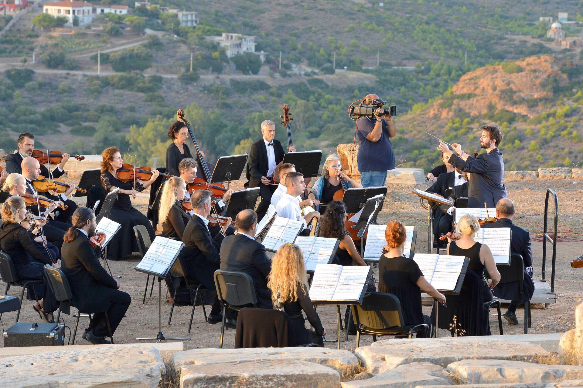 Για την σχηματοποίηση αυτού του νοήματος τα γυρίσματα ξεκίνησαν την αυγή και ολοκληρώθηκαν ακριβώς στην δύση του ηλίου με πλάνα από ολόκληρη την πορεία του φωτός γύρω από τον ναό. Τα ολοήμερα γυρίσματα διήρκεσαν τρεις ημέρες υπό την καθοδήγηση του βραβευμένου σκηνοθέτη Αντώνη Θεοχάρη Κιούκα και με την σημαντική συνέργεια του τηλεοπτικού συνεργείου της ΕΡΤ υπό τον Κώστα Φασόη». Τραγουδούν Κώστας Μακεδόνας, Βερόνικα Δαβάκη, η σολίστ της Λυρικής, σοπράνο Μυρσίνη Μαργαρίτη και ο στενός συνεργάτης του συνθέτη Γιώργος Φλωράκης. Συμμετέχει η Εθνική Συμφωνική Ορχήστρα και η Χορωδία της ΕΡΤ υπό την διεύθυνση του Στάθη Σούλη και την διδασκαλία τής Αγγελικής Πλόκα.
