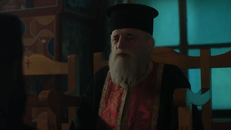 Ο ιερέας των Φαράσων, ο πνευματικός πατέρας και απλανής πνευματικός οδηγός που κράτησε ζωντανή την πίστη των Φαρασιωτών στον Χριστό και άσβεστη την αγάπη τους για την πατρίδα. Βάπτισε τον Αγιο Παΐσιο, δίνοντάς του το όνομα Αρσένιος, προφητεύοντας ότι θα γίνει μοναχός. Σε αυτόν τον κύκλο εμφανίζεται ως ανάμνηση και όραμα.