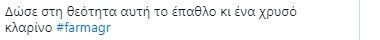 Ο 30χρονος κλαρινιτζής από την Καλαμπάκα ο οποίος συγχρόνως είναι και αγρότης αλλά και ιχθυοπώλης, όπως μας συστήθηκε, αποφάσισε να κάνει αυτό το ταξίδι στη Φάρμα και φαίνεται να έχει ήδη την τύχη με το μέρος του.