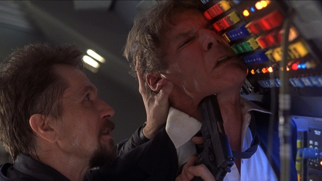 (“Air Force One”) Εδώ πλέον πάμε σε άλλη πίστα, καθώς ο πρόεδρος μετατρέπεται σε έναν τύπο «Πολύ Σκληρό για να Πεθάνει», εξολοθρεύοντας με την εξυπνάδα του και τις μπουνιές του, μία ομάδα «μισητών» τρομοκρατών, που έχει καταλάβει το επιβλητικό προεδρικό αεροσκάφος. Μία διασκεδαστική καταιγιστική περιπέτεια, με τον Χάρισον Φορντ στον κεντρικό ρόλο, γυρισμένη το 1997 από τον Βόλφγκανγκ Πέτερσεν, αλλά και μία φαντασίωση της εθνικιστικής Αμερικής, για το πως μπορεί να επιλύει τα θέματα εξωτερικής πολιτικής. Ο Γκάρι Όλντμαν είναι ο διεστραμμένος αρχηγός των τρομοκρατών και η Γκλεν Γκλόουζ, η αντιπρόεδρος, που θα παραμείνει πιστή στον ατρόμητο ηγέτη της.