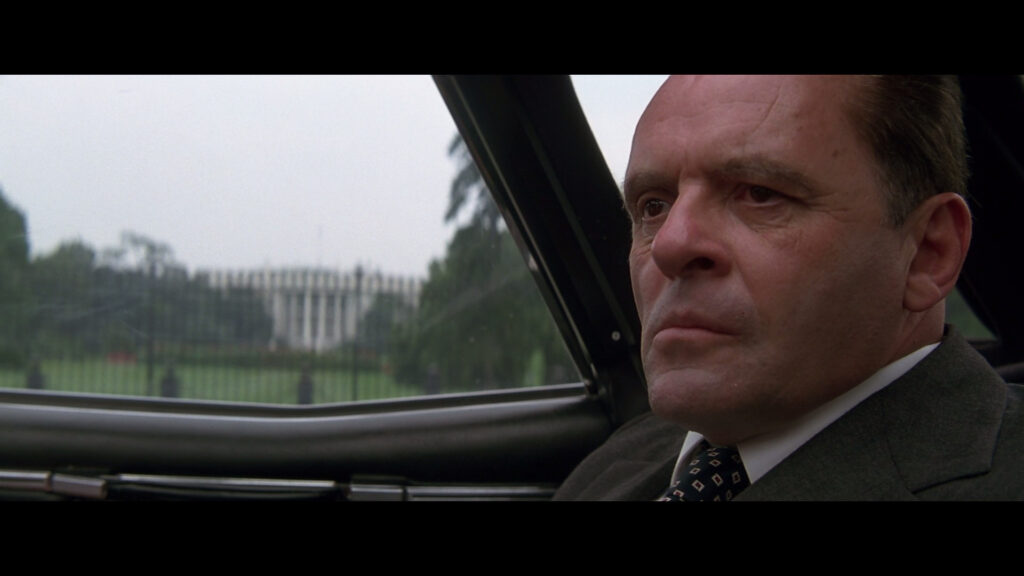 (“Nixon”) Βιογραφική ταινία (1995) για τον Ρίτσαρντ Νίξον, που υπογράφει ο «προβοκάτορας» του Χόλιγουντ, Όλιβερ Στόουν, έχοντας ως πρωταγωνιστή στον ομώνυμο ρόλο τον Άντονι Χόπκινς. Η ταινία, υποψήφια για τέσσερα Όσκαρ (μεταξύ των οποίων και για τον Α Ανδρικό Ρόλο) θα προσπαθήσει να αναδείξει την πολύπλοκη προσωπικότητα του Νίξον, την άνοδο και την πτώση ενός πολιτικού, που η ευφυΐα του συγκρούεται με το «τέρας» που έκρυβε μέσα του, αλλά και την καθοριστική παρέμβαση του βιομηχανικού – στρατιωτικού και οικονομικού κατεστημένου στα πολιτικά πράγματα της χώρας. Στην ταινία, επικής διάρκειας 190 λεπτών, εκτός του Χόπκινς, εμφανίζεται πλειάδα εξαίρετων ηθοποιών, μεταξύ των οποίων, οι Τζόαν Άλεν, Πολ Σορβίνο, Πάουερς Μπουθ, Μαίρη Στίνμπεργκεν, Τζέιμς Γουντς, Μπομπ Χόσκινς και Έντ Χάρις.