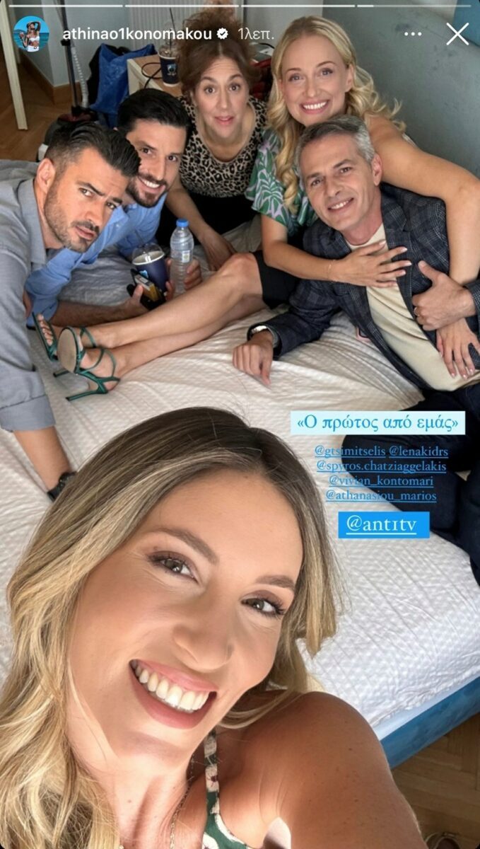 Η Αθηνά Οικονομάκου, που φαίνεται φανερά ενθουσιασμένη με την συμμετοχή της στη σειρά Ο πρώτος από εμάς, μοιράστηκε μέσα από τον προσωπικό της λογαριασμό στο instagram μια ανάρτηση με μερικές φωτογραφίες με τους συμπρωταγωνιστές της από τα γυρίσματα.