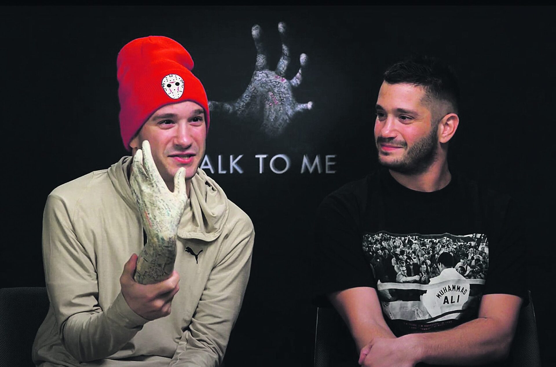 Στο «Talk to me» κάποιοι έφηβοι, που αποτελούν μια παρέα, παίζουν ένα περίεργο παιχνίδι στα πάρτι τους και το βιντεοσκοπούν με τα κινητά τους τηλέφωνα. Εκείνος που παίζει καλείται να κρατήσει για 90 δευτερόλεπτα ένα κεραμικό χέρι, που είναι στερεωμένο σε ένα τραπέζι. Ο παίκτης που κρατάει το χέρι μπορεί και συνομιλεί με το πνεύμα ενός πεθαμένου. Οταν όμως η Μία, που έχασε τη μητέρα της πριν από δύο χρόνια, ξεπεράσει το χρονικό όριο των 90 δευτερολέπτων, απελευθερώνονται απρόβλεπτες υπερφυσικές δυνάμεις με αιματηρά αποτελέσματα.