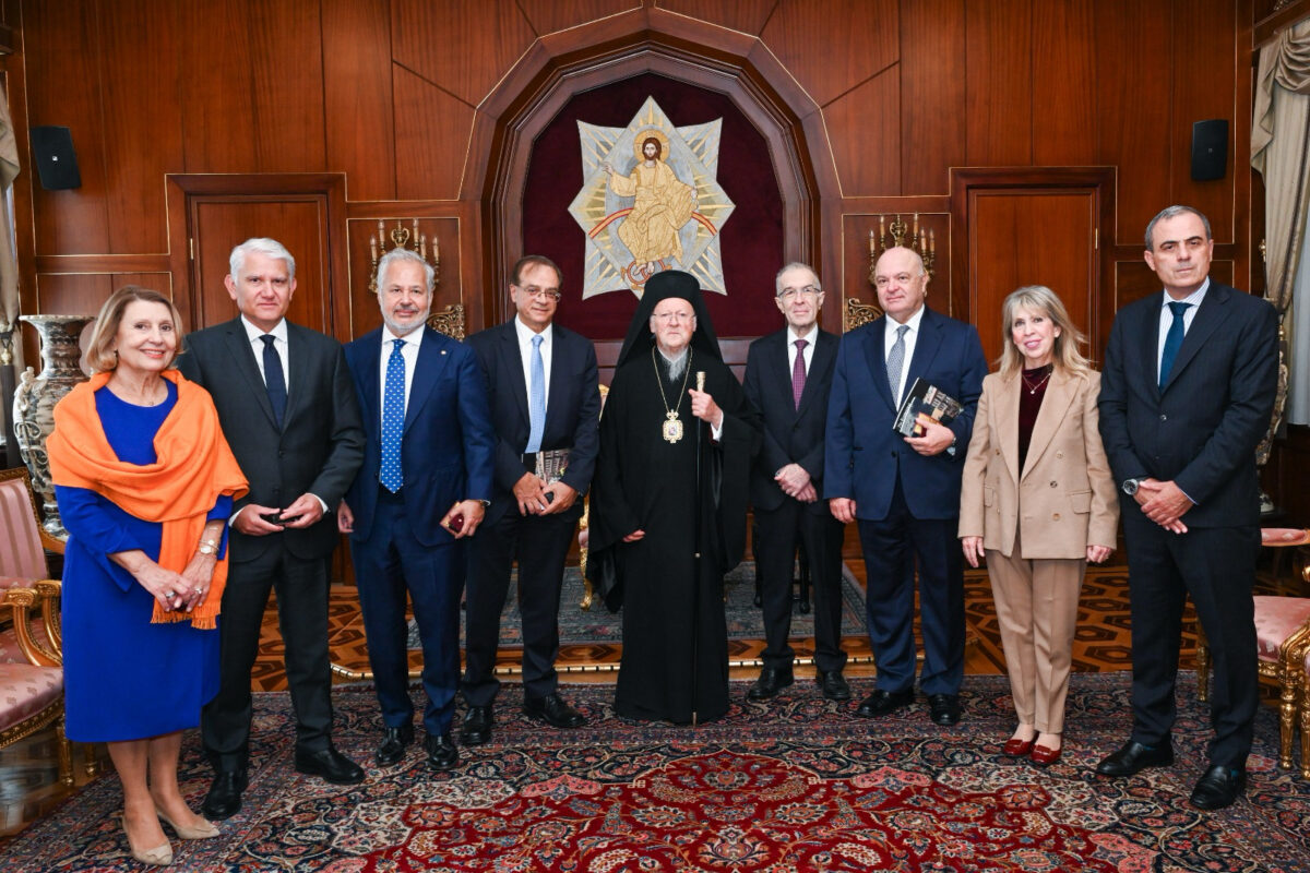 «Τό Οἰκουμενικόν Πατριαρχεῖον, μέ εὐήκοον οὖς διά τούς κραδασμούς τῆς ἱστορίας καί τάς ὑπαρξιακάς ἀναζητήσεις καί ἀνάγκας τοῦ ἀνθρώπου, μακράν ἀπό ἐφημέρους στόχους καί χρησιμοθηρικάς θεωρήσεις, διάκονος τῆς ἀλληλεγγύης, τῆς εἰρήνης καί τῆς δικαιοσύνης, μέ ἀπόλυτον σεβασμόν πρός τό ἀνθρώπινον πρόσωπον καί τήν ἀκεραιότητα τῆς δημιουργίας, τονίζει τήν ἀνάγκην μιᾶς βιωσίμου οἰκονομίας, ἡ ὁποία θα συνδυάζῃ οἰκονομικάς στρατηγικάς μέ πνευματικάς ἀρχάς καί ἠθικά κριτήρια. Προφανέστατα, ὁ τρόπος μέ τόν ὁποῖον βλέπομεν τόν ἄνθρωπον, τήν προέλευσιν, τόν σκοπόν καί τό νόημα τῆς ὑπάρξεώς του, προσδιορίζει καί τό πῶς φανταζόμεθα τό μέλλον τῶν κοινωνιῶν μας. Ὁ ἄνθρωπος εἶναι περισσότερον ἀπό homo oeconomicus, περισσότερον ἀπό ἀπρόσωπος καταναλωτική μονάς. Ἀπευθύνομεν πρός ὅλους τούς παράγοντας τῆς οἰκονομικῆς ζωῆς τήν προτροπήν, νά μή παραβλέπουν εἰς τάς ἀποφάσεις των τάς πνευματικάς ἀξίας, ἡ ἀθέτησις τῶν ὁποίων παράγει λίαν ἀρνητικάς συνεπείας. Ὡς γνωστόν, ὁ ὕπατος τῶν φιλοσόφων Πλάτων διετύπωσε, κατά τῆς ἀρχῆς τοῦ σοφιστοῦ Πρωταγόρου «Πάντων χρημάτων μέτρον ἄνθρωπος», τήν περίφημον ρῆσιν «Θεός πάντων χρημάτων μέτρον», παραπέμψας εἰς τό Ὑπερβατικόν, τό Ἀπόλυτον, ὡς σταθερόν σημεῖον ἀναφορᾶς τῶν ἀνθρωπίνων πραγμάτων. Καί τό προοίμιον τοῦ Συντάγματος τῆς Ἑλλάδος «Εἰς τό ὄνομα τῆς ἁγίας καί ὁμοουσίου καί ἀδιαιρέτου Τριάδος», αὐτήν τήν ἀλήθειαν ἐκφράζει. Μέ αὐτάς τάς σκέψεις καί τά αἰσθήματα, ἐκφράζομεν ἅπαξ ἔτι τήν χαράν μας διά τήν παρουσίαν σας εἰς τό Κέντρον τῆς Ὀρθοδοξίας. Σήμερον τό ἀπόγευμα θά ἔχωμεν τήν εὐκαιρίαν νά σᾶς εὐχαριστήσωμεν διά την καθοριστικήν συμβολήν σας εἰς τήν ἀνακαίνισιν καί τήν ἀντισεισμικήν θωράκισιν τοῦ κτηρίου τοῦ Ζωγραφείου μας. Ὁ παντεπόπτης καί παντευεργέτης Θεός τῶν θαυμασίων, νά σκέπῃ ἐσᾶς καί τούς ἀγαπημένους σας καί νά εὐλογῇ τά ἔργα καί τήν ὑψηλήν ἀποστολήν σας.»