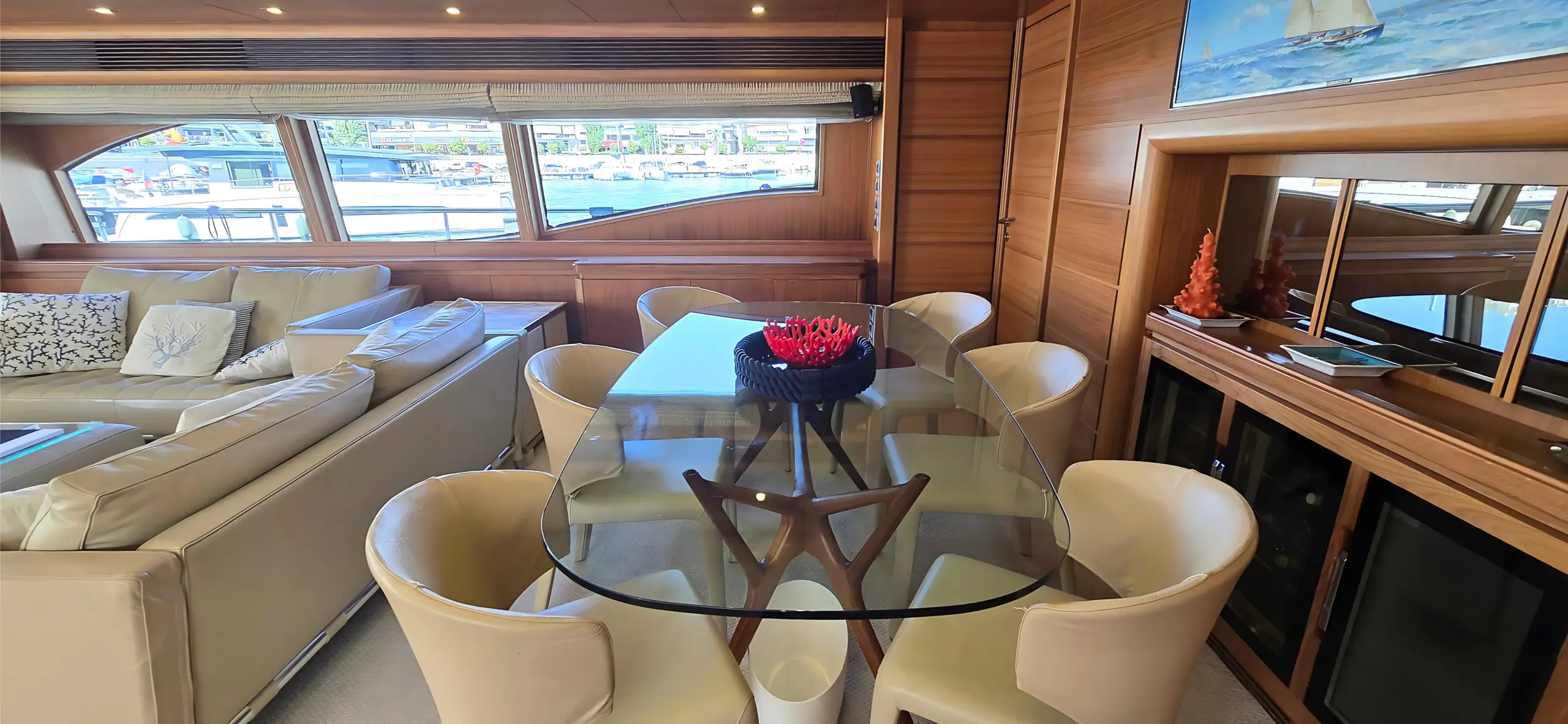 Επιδόσεις: Με δύο κινητήρες MTU, το σκάφος συνδυάζει την άνεση με την ταχύτητα, αγγίζοντας τους 27 κόμβους (max speed).