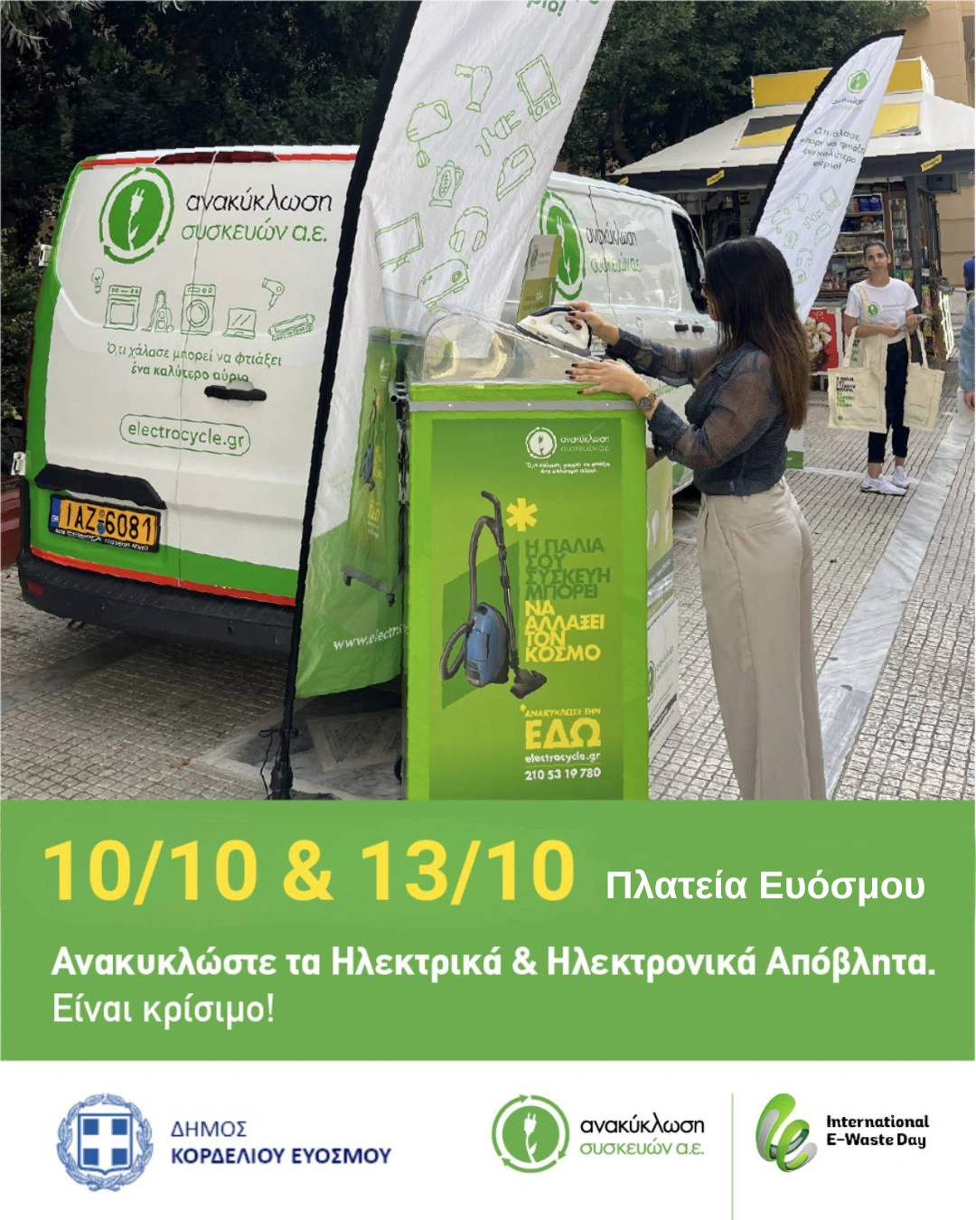 Στο ειδικά διαμορφωμένο όχημα van της Ανακύκλωση Συσκευών Α.Ε, οι δημότες θα έχουν τη δυνατότητα να ανακυκλώσουν τις μικρές ηλεκτρικές και ηλεκτρονικές συσκευές με εύκολο, άμεσο και υπεύθυνο τρόπο.