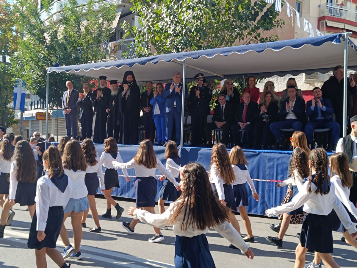– 11:30 π.μ.: Παρέλαση τμημάτων μαθητών και μαθητριών των σχολείων, των προσκόπων, των φορέων και συλλόγων, στην οδό Μεγάλου Αλεξάνδρου από το ύψος του Ι.Ν. Ευαγγελισμού της Θεοτόκου, έως το ύψος της οδού Κασσάνδρου.