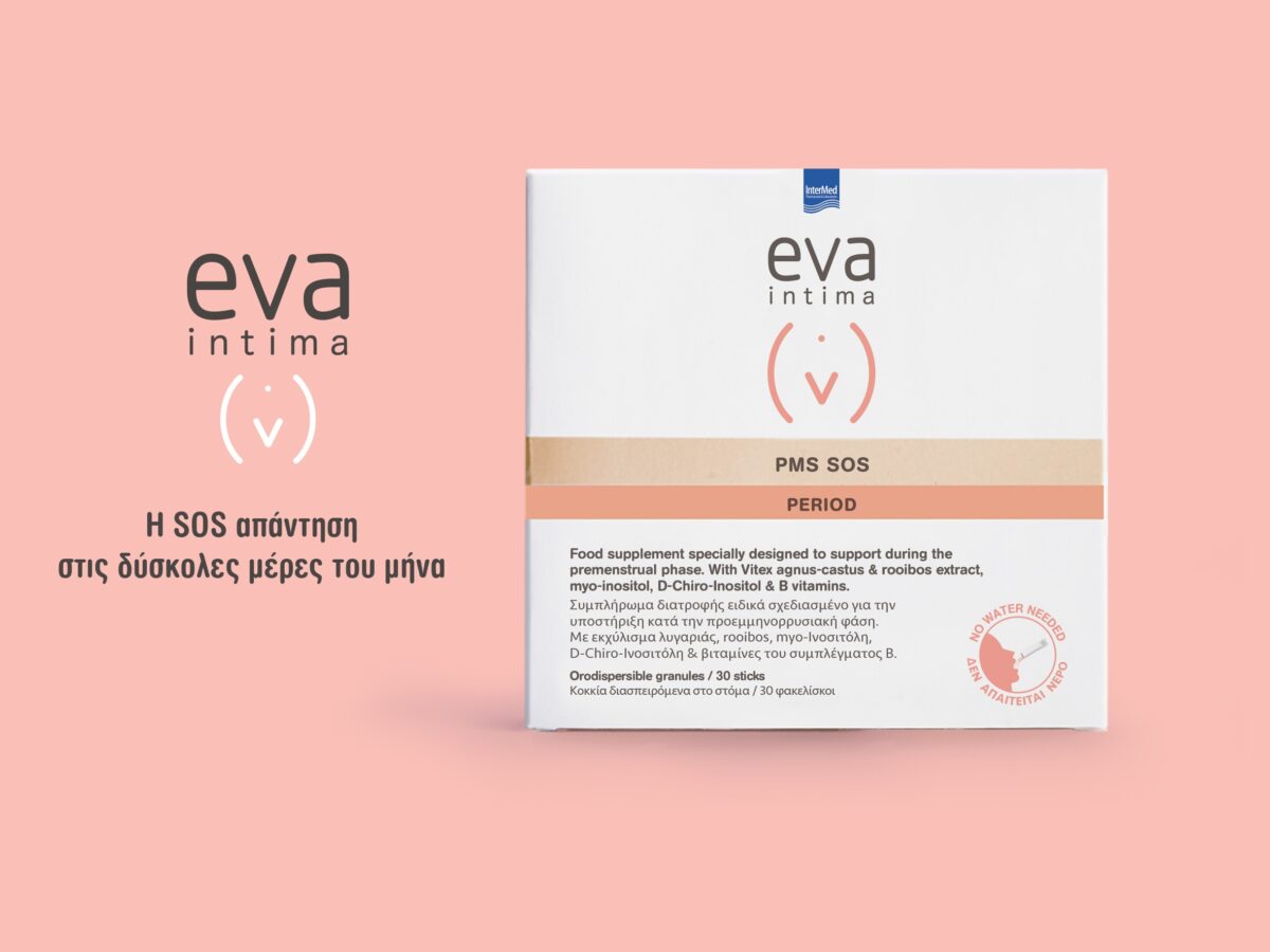 Με επιστημονικά τεκμηριωμένα φυσικά συστατικά και έμφαση στη φυσική υποστήριξη της γυναίκας, το Eva Intima PMS SOS αποτελεί τη νέα λύση για την αποτελεσματική και ασφαλή διαχείριση των συμπτωμάτων του PMS.