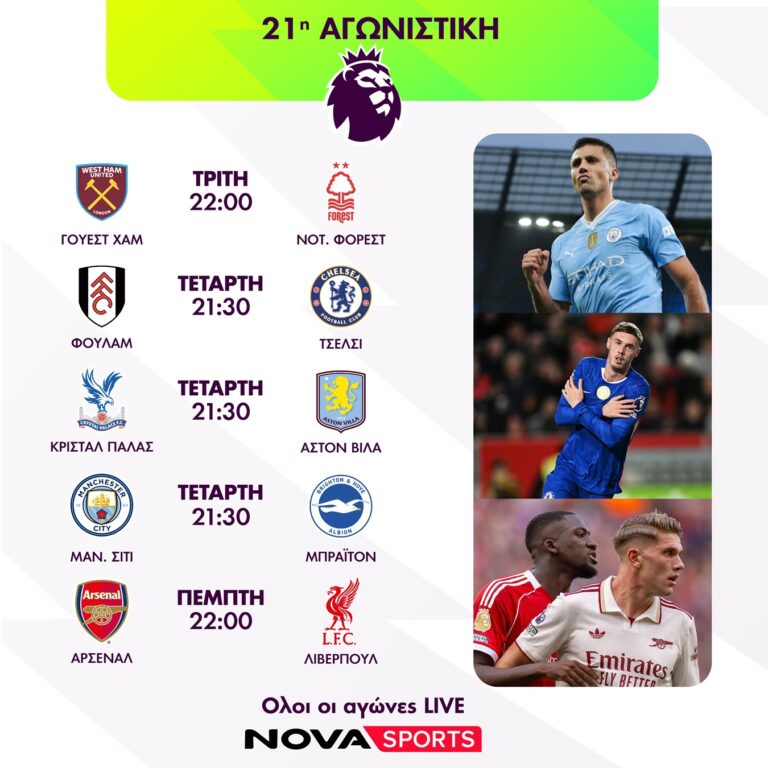 - Nova: Συναρπαστικό θέαμα με όλη τη Stoiximan Super League και Άρης – ΑΕΚ, Άρσεναλ – Λίβερπουλ, Κύπελλο Αγγλίας, Ίντερ – Νάπολι στα κανάλια Novasports και Cosmote Sport