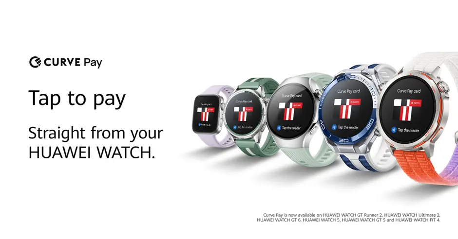 Το Curve Pay είναι πλέον εύκολα προσβάσιμο στα smart wearables HUAWEI WATCH Ultimate 2, HUAWEI WATCH 5, στη σειρά HUAWEI WATCH GT 6, στη σειρά HUAWEI WATCH GT 5 και στη σειρά HUAWEI WATCH FIT 4.