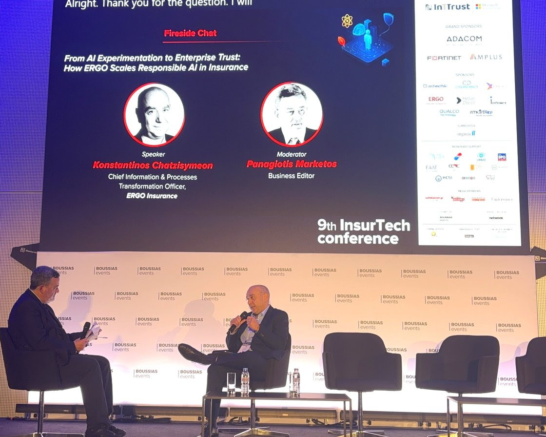Ο κ. Κωνσταντίνος Χατζησυμεών, Διευθυντής Τομέα Πληροφοριακών Συστημάτων & Διαδικασιών της ERGO Ασφαλιστικής, αναφέρθηκε στη μετάβαση του Ομίλου από το στάδιο του πειραματισμού στην επιχειρησιακή εμπιστοσύνη, περιγράφοντας το μοντέλο του AI Factory. Αυτή η κεντρικοποιημένη υποδομή διασφαλίζει ενιαία πρότυπα ασφάλειας, συμμόρφωσης και ποιότητας, επιτρέποντας την ταχεία ανάπτυξη λύσεων σε πολλαπλές επιχειρησιακές μονάδες, χωρίς να θυσιάζεται η διακυβέρνηση ή ο έλεγχος. Η προσέγγιση της ERGO παραμένει ανθρωποκεντρική, υιοθετώντας αυστηρά την αρχή του Human-in-the-Loop, καθώς η τελική ευθύνη των αποφάσεων παραμένει στα εξειδικευμένα στελέχη, ενώ η τεχνολογία λειτουργεί υποστηρικτικά. Η επένδυση του Ομίλου σε αυτόν τον τομέα αναμένεται να φτάσει τα 130 εκατομμύρια ευρώ έως το 2030, γεγονός που επιβεβαιώνει τη μακροπρόθεσμη δέσμευση για υπεύθυνη, βιώσιμη και μακροπρόθεσμη ψηφιακή στρατηγική.