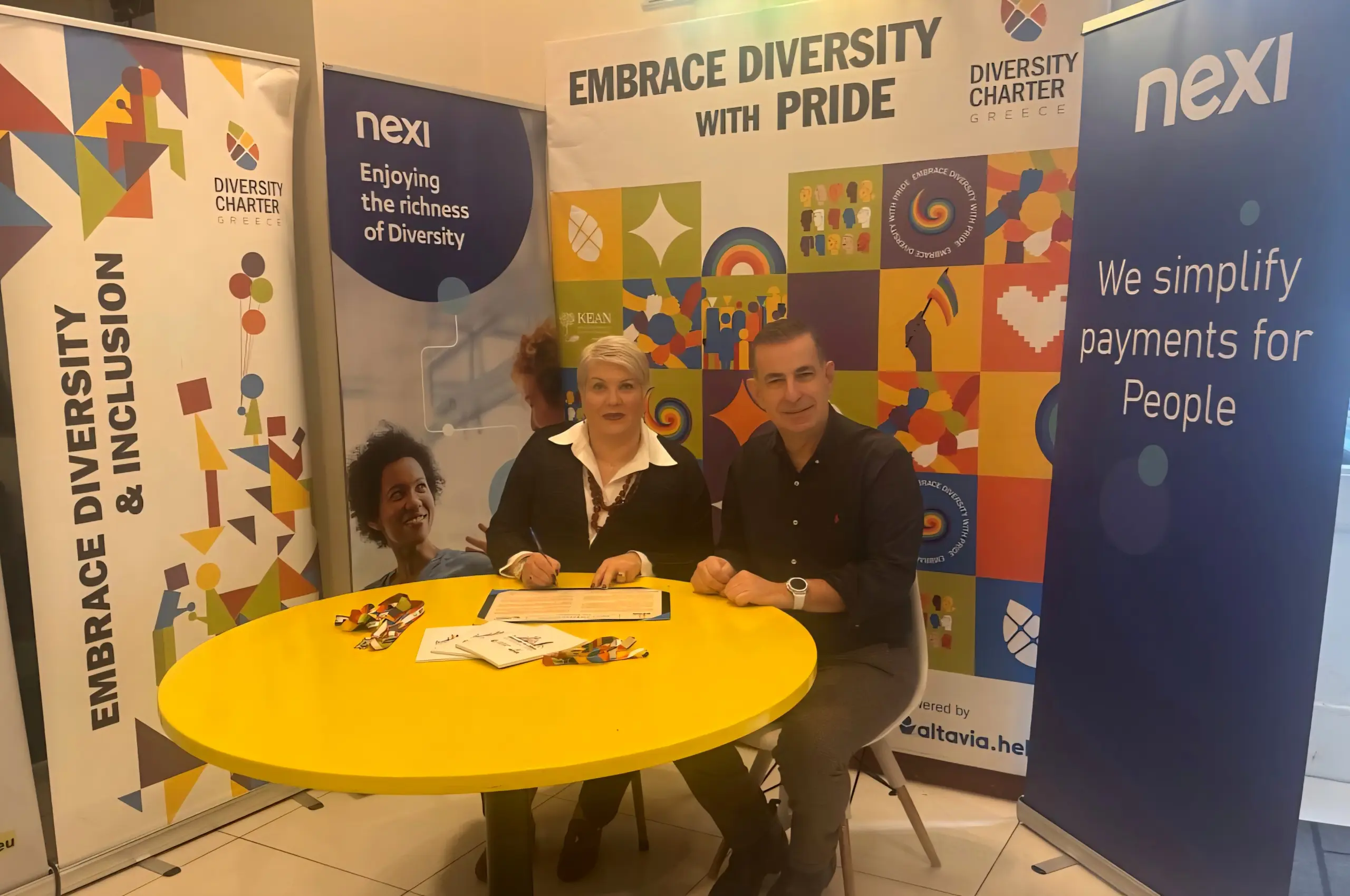 Η υπογραφή πραγματοποιήθηκε από την Επικεφαλής της Nexi Ελλάδος, κ. Κάτια Σταθάκη, και τον Πρόεδρο και Ιδρυτή της Χάρτας Διαφορετικότητας στην Ελλάδα, κ. Σταύρο Μηλιώνη. Στη διαδικασία συμμετείχε και η κ. Θεώνη Τριανταφυλλίδου, Head of Human Resources της Nexi, στο πλαίσιο της κουλτούρας συμπερίληψης και σεβασμού στη διαφορετικότητα που καλλιεργεί ο οργανισμός.