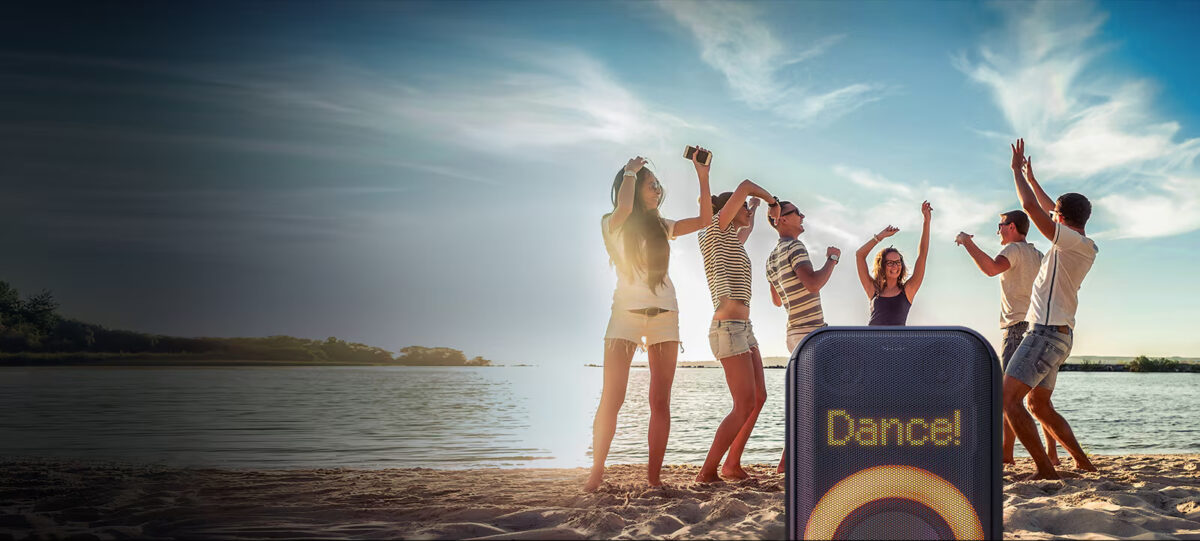 Και φυσικά, υπάρχουν και οι στιγμές που θες η μουσική να σ ’ακολουθεί όπου κι αν βρίσκεσαι. Μια εκδρομή ή ένα αυθόρμητο gathering σε εξωτερικό χώρο χρειάζονται κάτι πρακτικό και αξιόπιστο. Το LG XBOOM DXL7T, με φορητό σχεδιασμό και ενσωματωμένη μπαταρία, σου δίνει τη δυνατότητα να παίρνεις τη μουσική μαζί σου παντού. Η ασύρματη σύνδεση μέσω Bluetooth, ο δυνατός ήχος και ο εντυπωσιακός φωτισμός διατηρούν τη διάθεση ψηλά, ενώ η ανθεκτική κατασκευή το καθιστά ιδανικό για outdoor χρήση.[1]