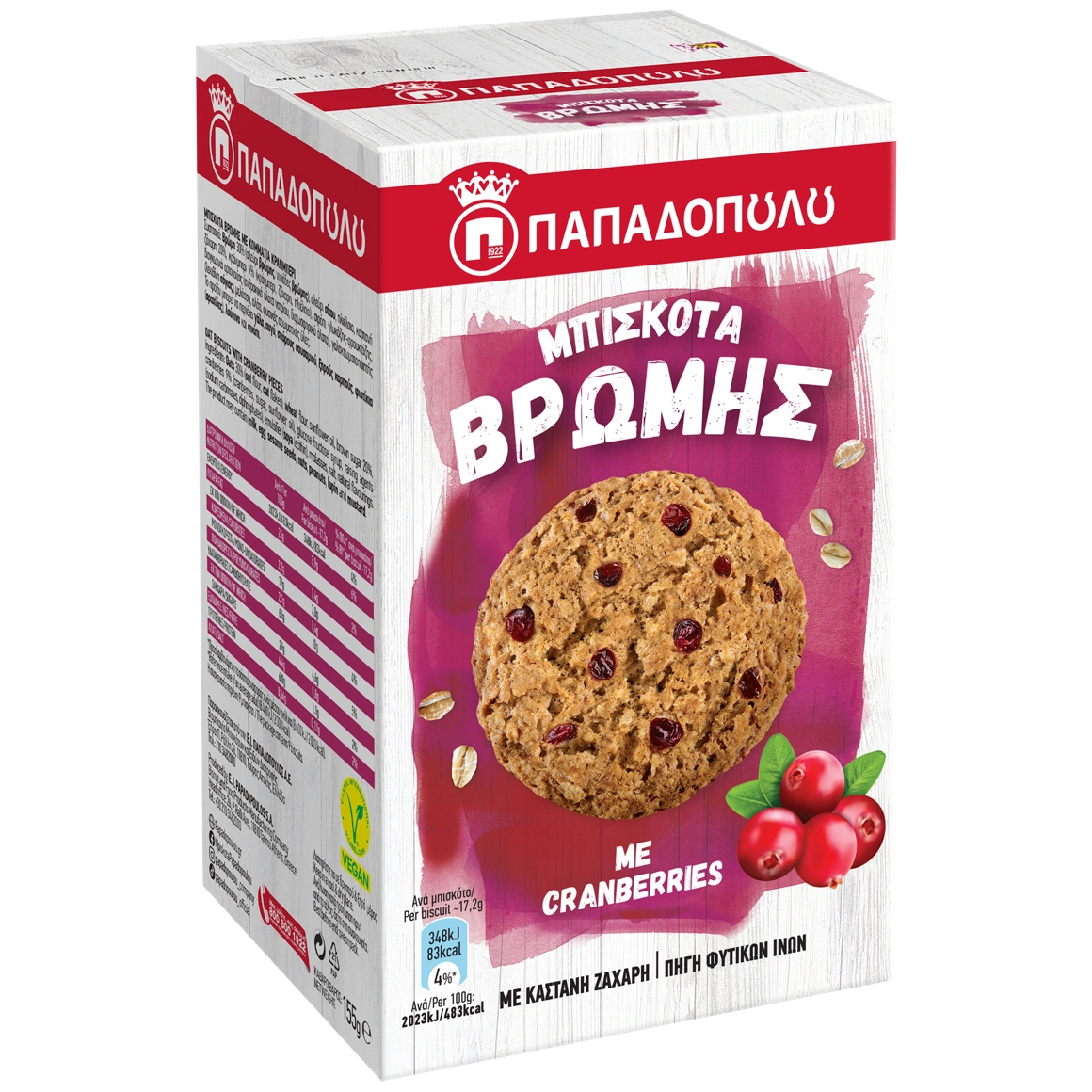 Τα νέα Μπισκότα Βρώμης Παπαδοπούλου με Cranberries έρχονται να κερδίσουν την προτίμησή μας με μία σειρά από οφέλη: αποτελούν πηγή φυτικών ινών και περιέχουν καστανή ζάχαρη και φυσικές αρωματικές ύλες!