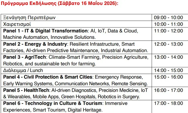 Το κεντρικό θέμα της εκδήλωσης είναι: «Έξυπνες Περιφέρειες – Πώς η Θεσσαλία μπορεί να πρωτοπορήσει στον Ψηφιακό Μετασχηματισμό».