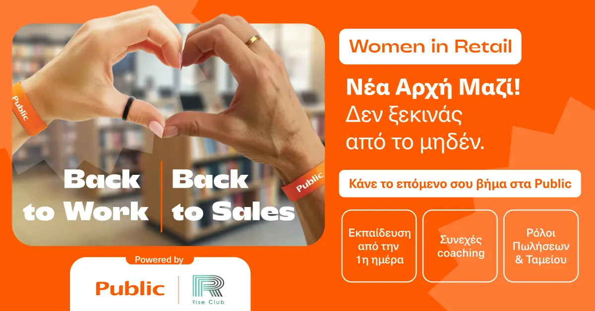 Η κα Ηλέκτρα Διαμαντή, HR Director των Public Group, δήλωσε σχετικά: «Είμαστε ιδιαίτερα χαρούμενοι για τη συνεργασία μας με το Rise Club και την υλοποίηση της πρωτοβουλίας “Back to Work. Back to Sales.”. Στα Public πιστεύουμε ότι η πραγματική ενδυνάμωση των γυναικών στην εργασία δεν αφορά μόνο την πρόσβαση σε μια θέση εργασίας, αλλά τη δημιουργία ευκαιριών ανάπτυξης, τη συνεχή πρόσβαση στη γνώση και την προσωπική εξέλιξη. Μέσα από αυτή τη συνεργασία επιδιώκουμε να δώσουμε σε περισσότερες γυναίκες τα εργαλεία, την αυτοπεποίθηση και τις προοπτικές που χρειάζονται για να επιστρέψουν δυναμικά στην αγορά εργασίας, ανοίγοντας νέους επαγγελματικούς δρόμους στον κλάδο του retail. Παράλληλα, ενισχύουμε τη δέσμευσή μας να καλλιεργούμε μια εταιρική κουλτούρα που προάγει τη συνεχή εξέλιξη των ανθρώπων μας και την υποστήριξη της κοινωνίας μας».